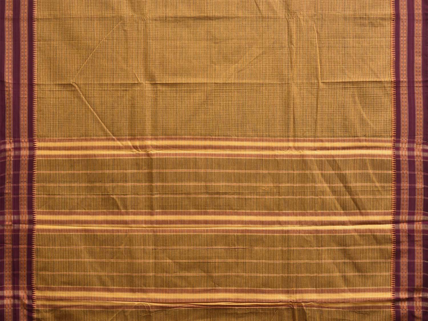 Olive and Maroon Narayanpet Cotton Handloom Saree with Checks Design No Blouse np1380