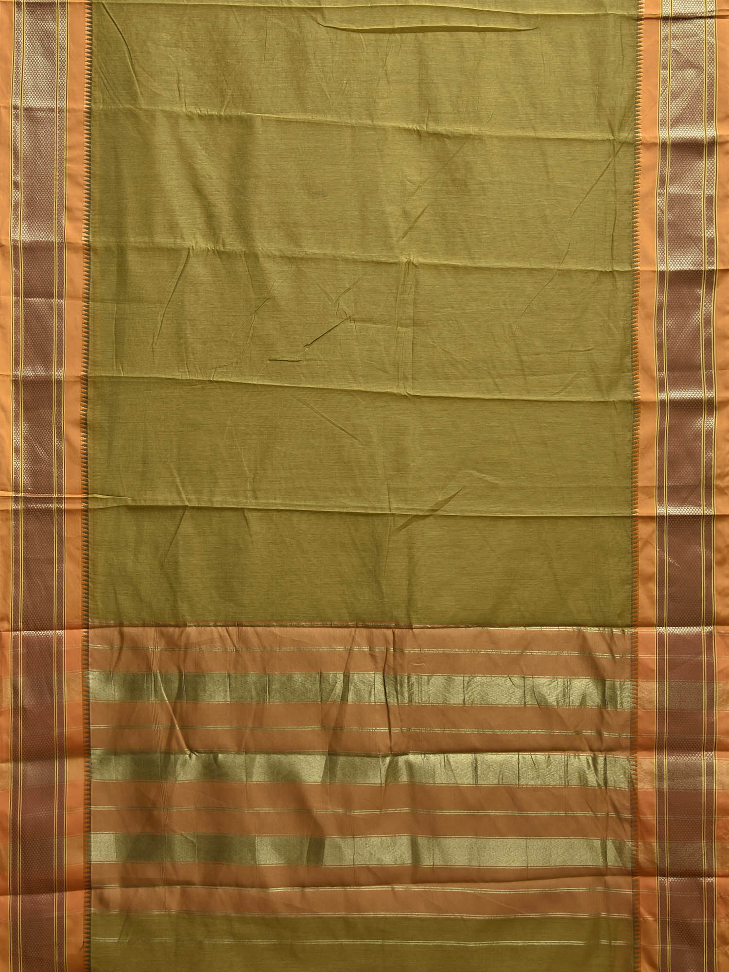 Olive and Mustard Bamboo Cotton Plain Saree with Contrast Pallu Design No Blouse bc0927
