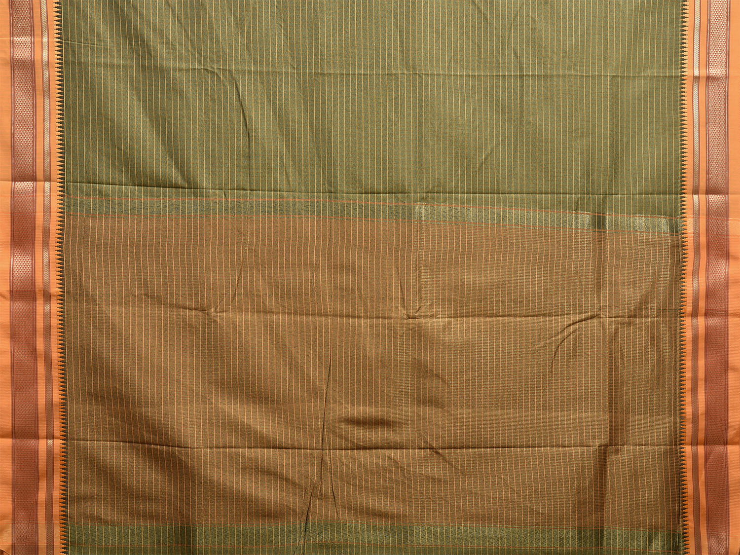 Olive and Mustard Bamboo Cotton Viscose Silk Saree with Strips Design No Blouse bc0483