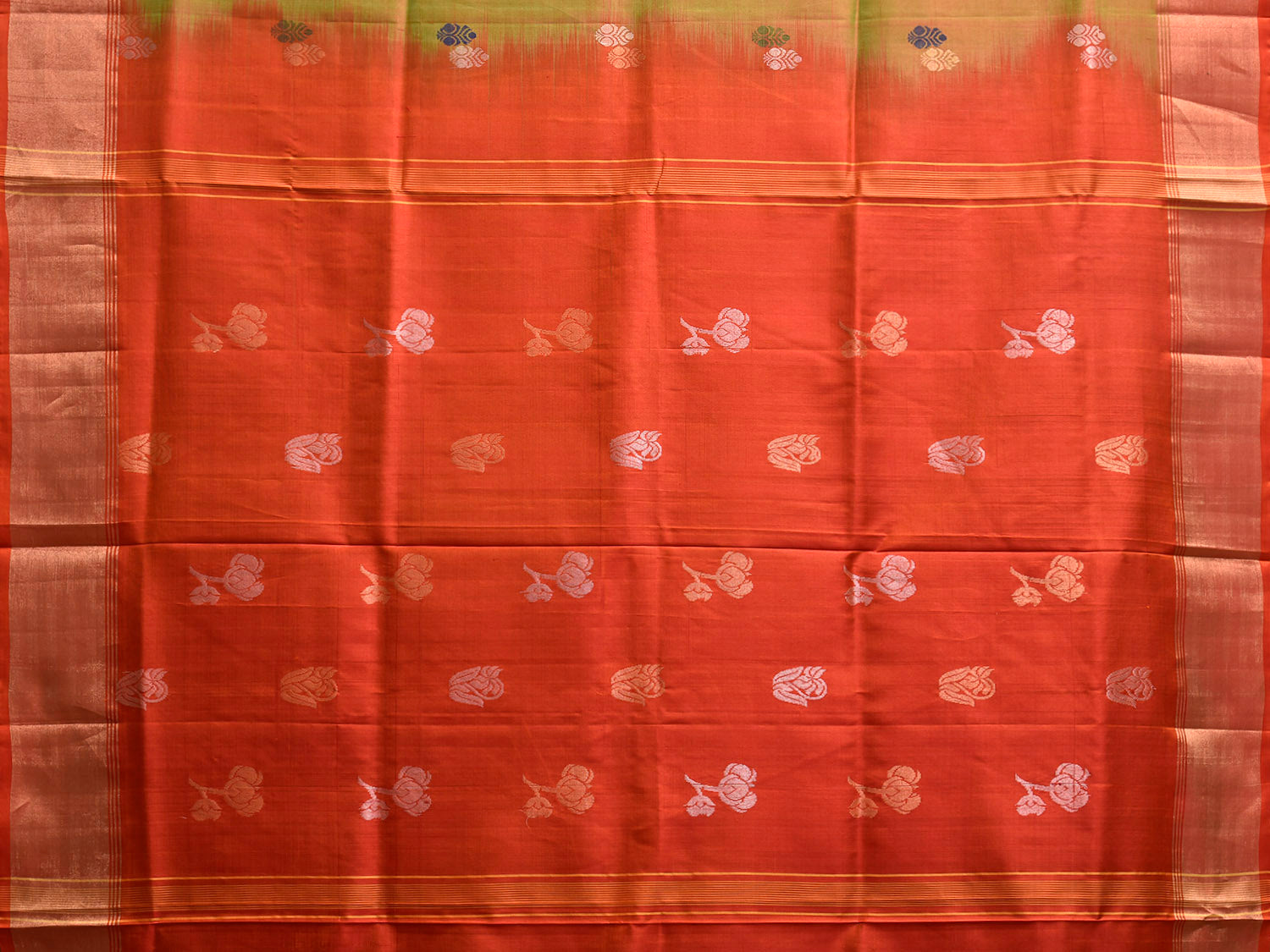 Olive and Orange Uppada Silk Handloom Saree with Body Buta Design u2435