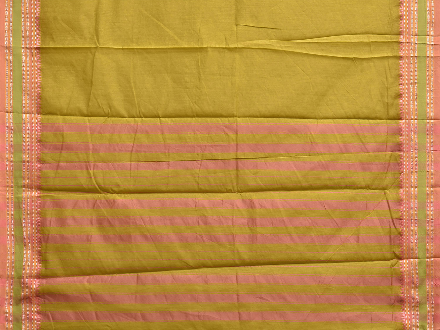 Olive and Peach Bamboo Cotton Saree with Checks Design No Blouse bc1055