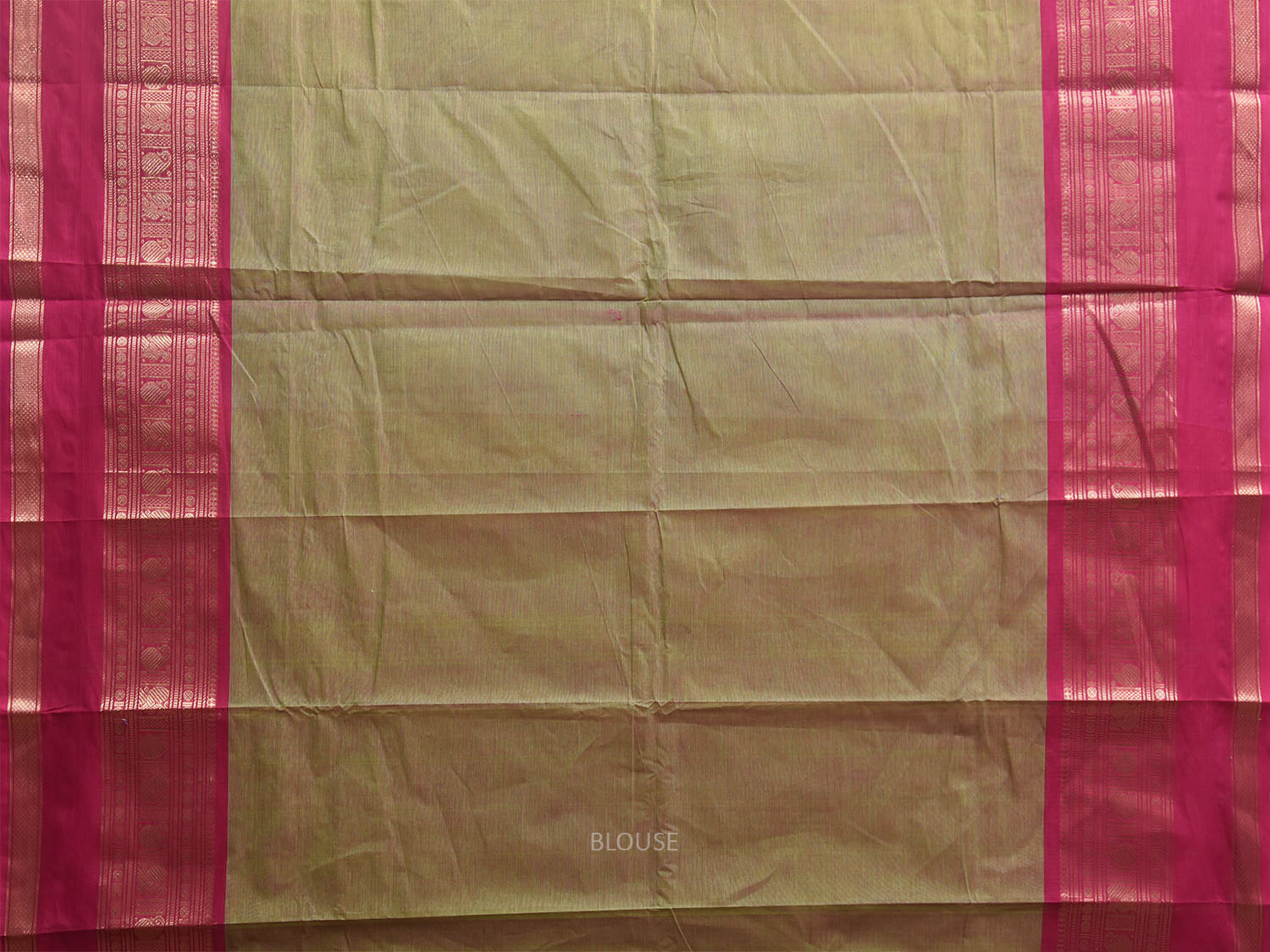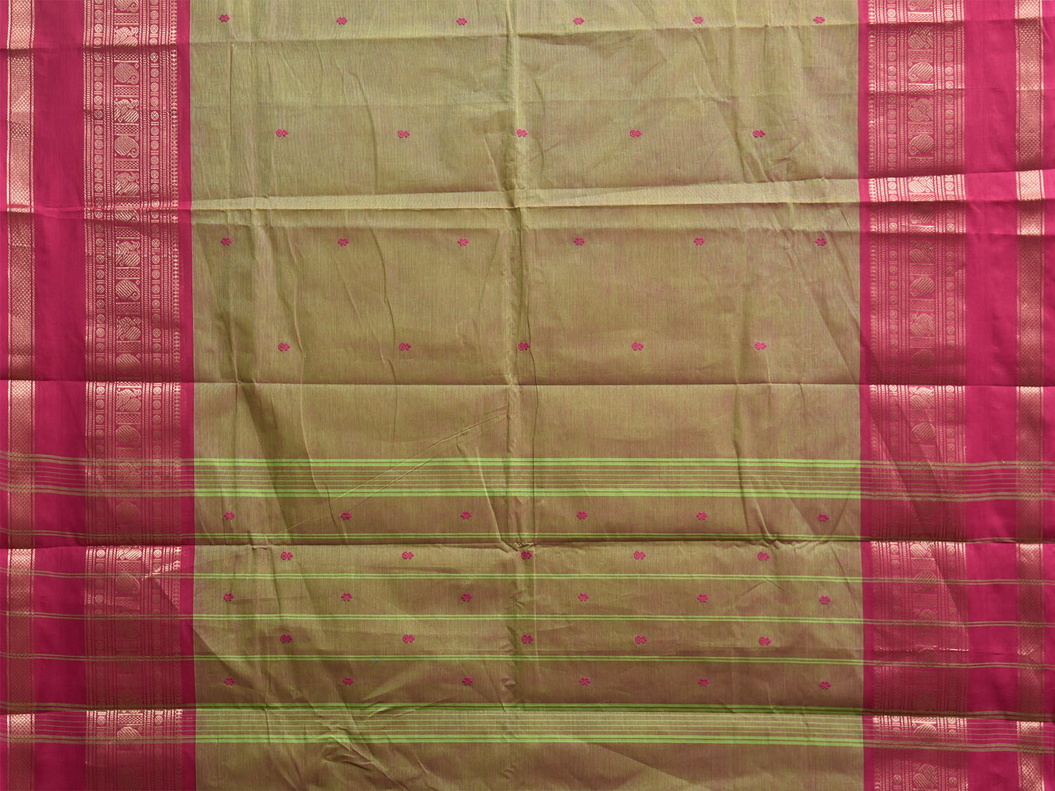 Olive and Pink Kanchipuram Cotton Saree with Strips Pallu and Border Design k1012