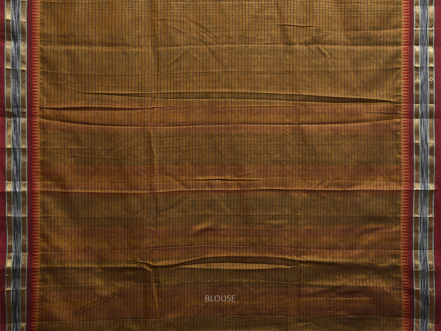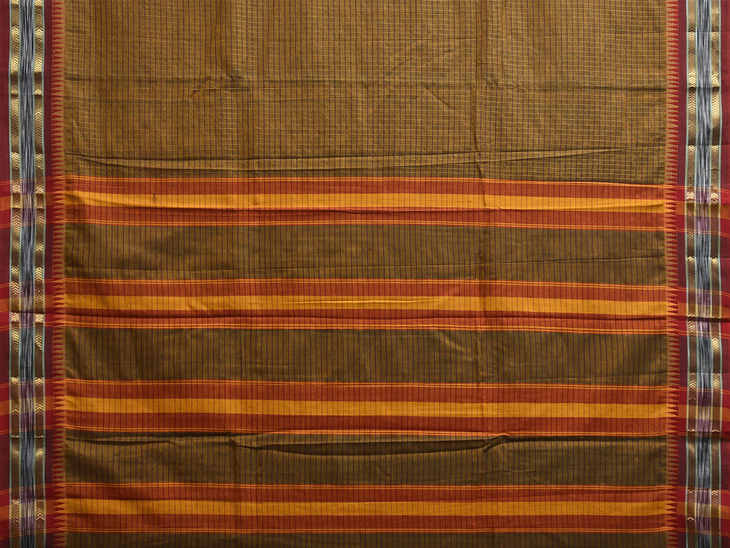 Olive and Red Narayanpet Cotton Saree with Checks and Strips Pallu Design np1214