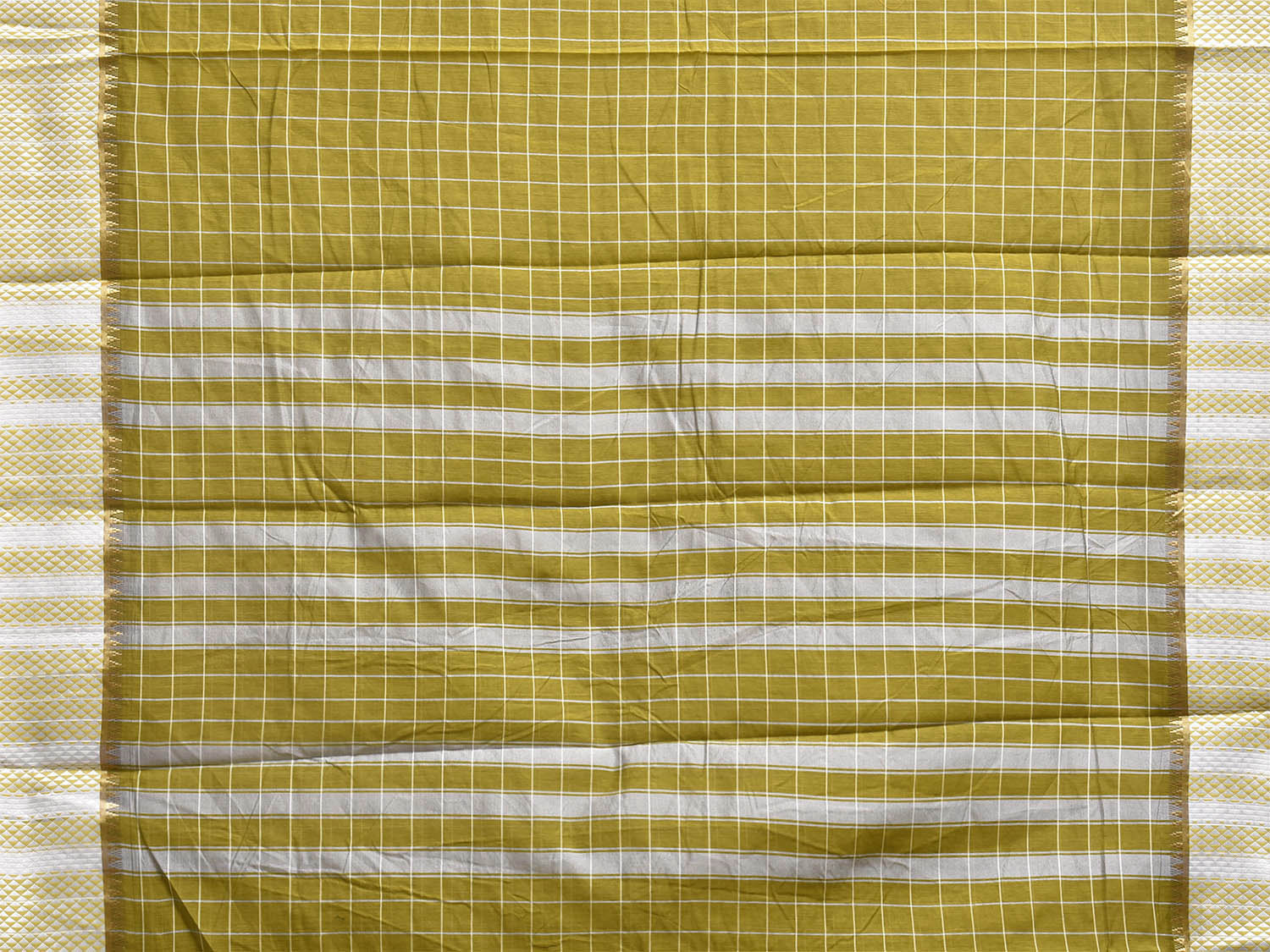 Olive and White Bamboo Cotton Saree with Big Checks Design No Blouse bc1057