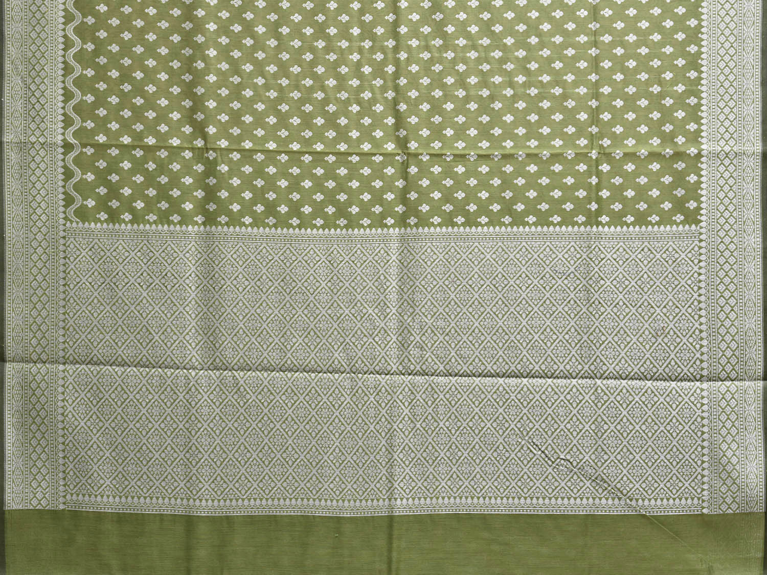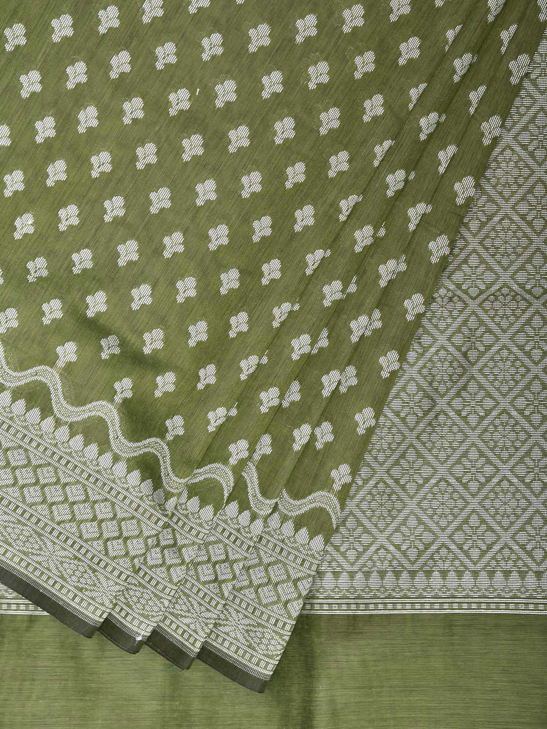Olive Dhakai Jamdani Cotton Viscose Saree with Small Buta and Pallu Design dj0232