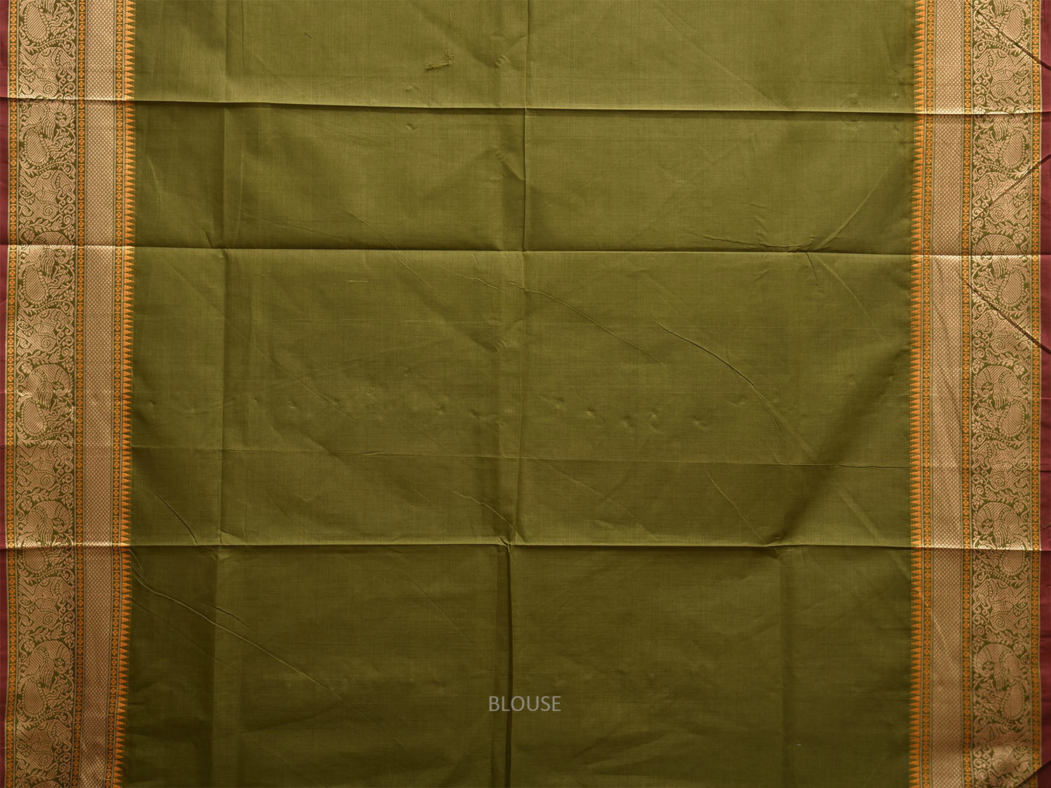 Olive Kanchipuram Cotton Plain Saree with Border Design k0937