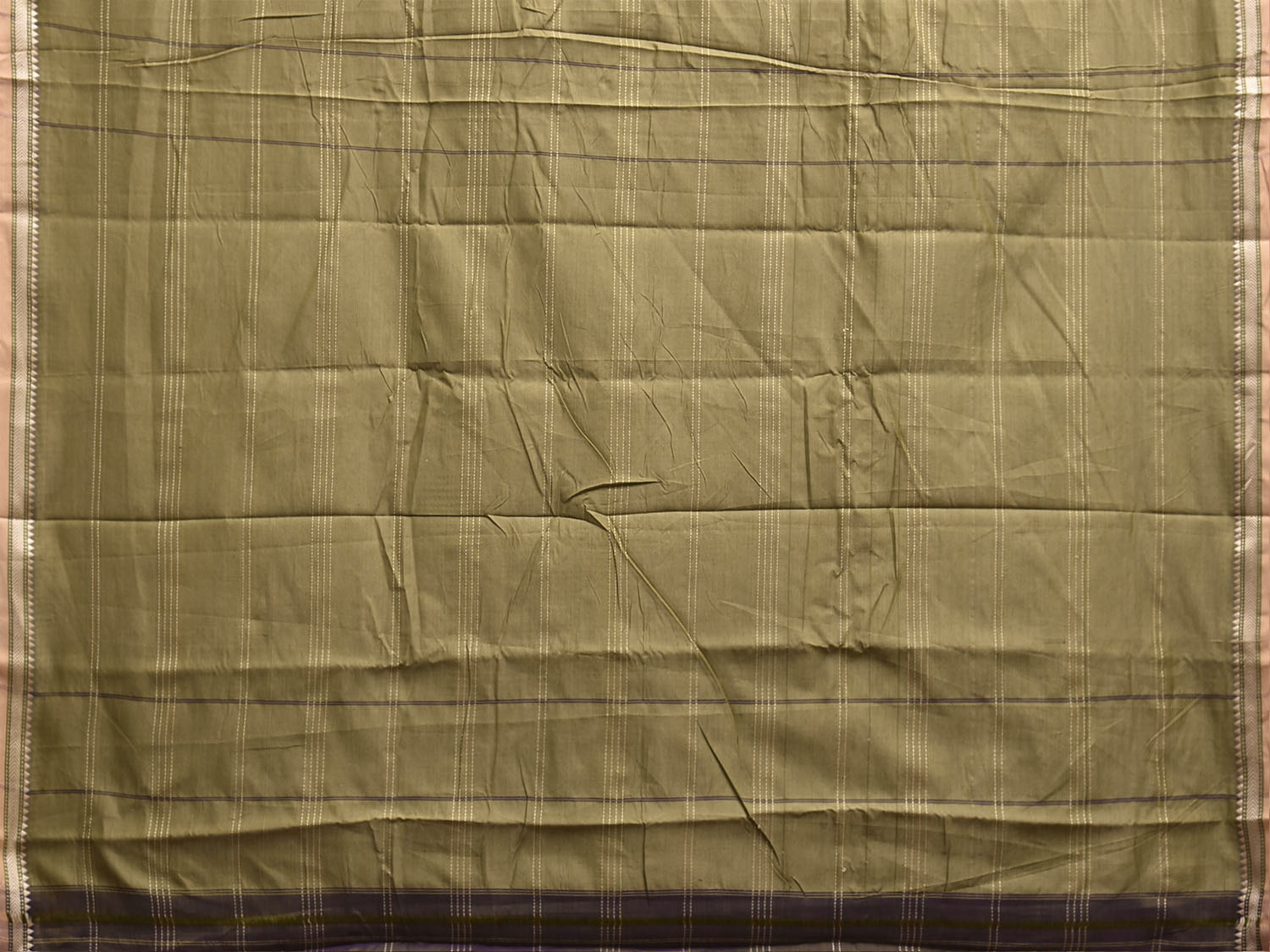 Olive Narayanpet Cotton Saree with Strips Body Design No Blouse