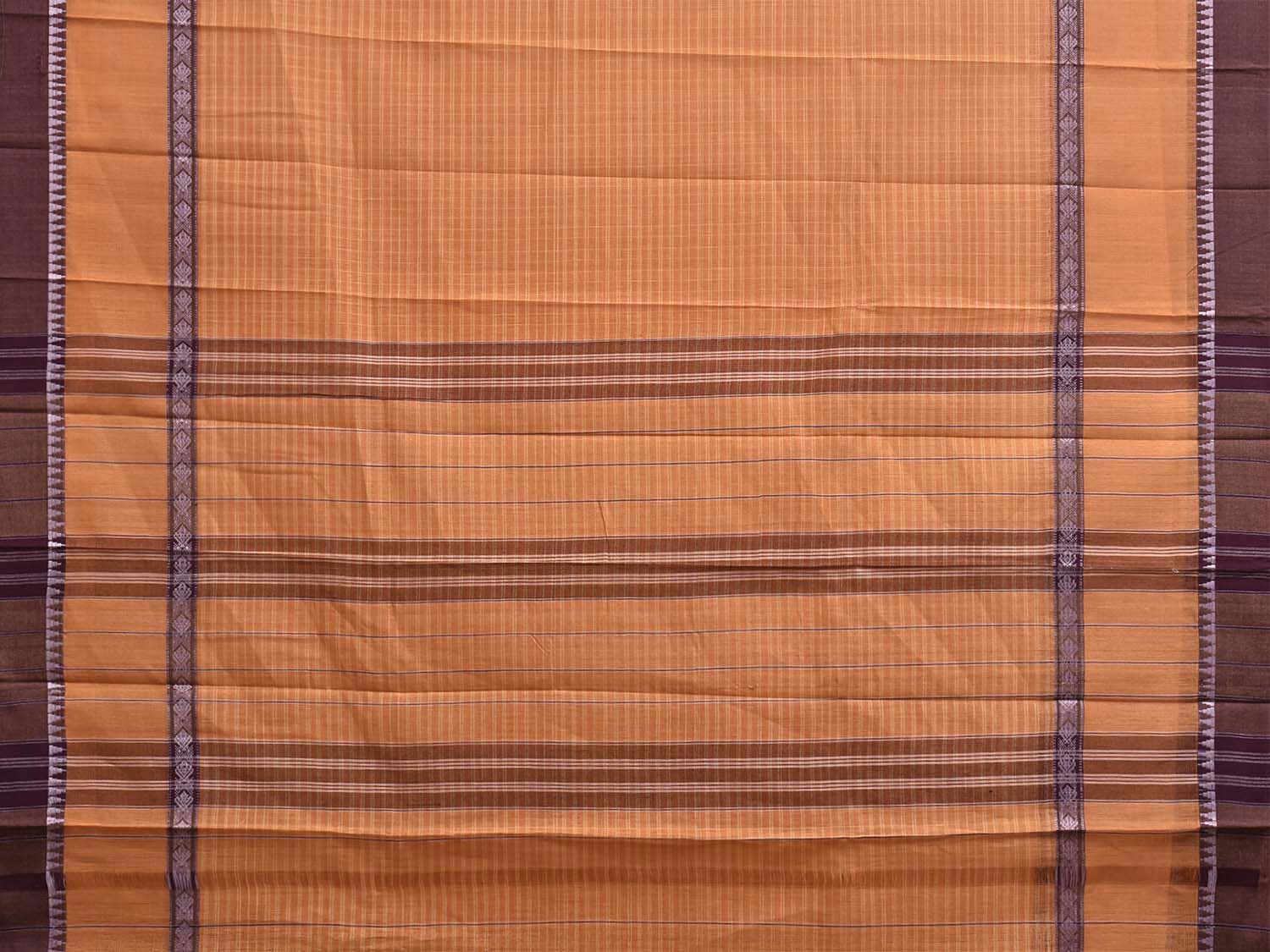 Orange and Brown Narayanpet Cotton Saree with Checks and Big Border Design No Blouse. This saree has no blouse.