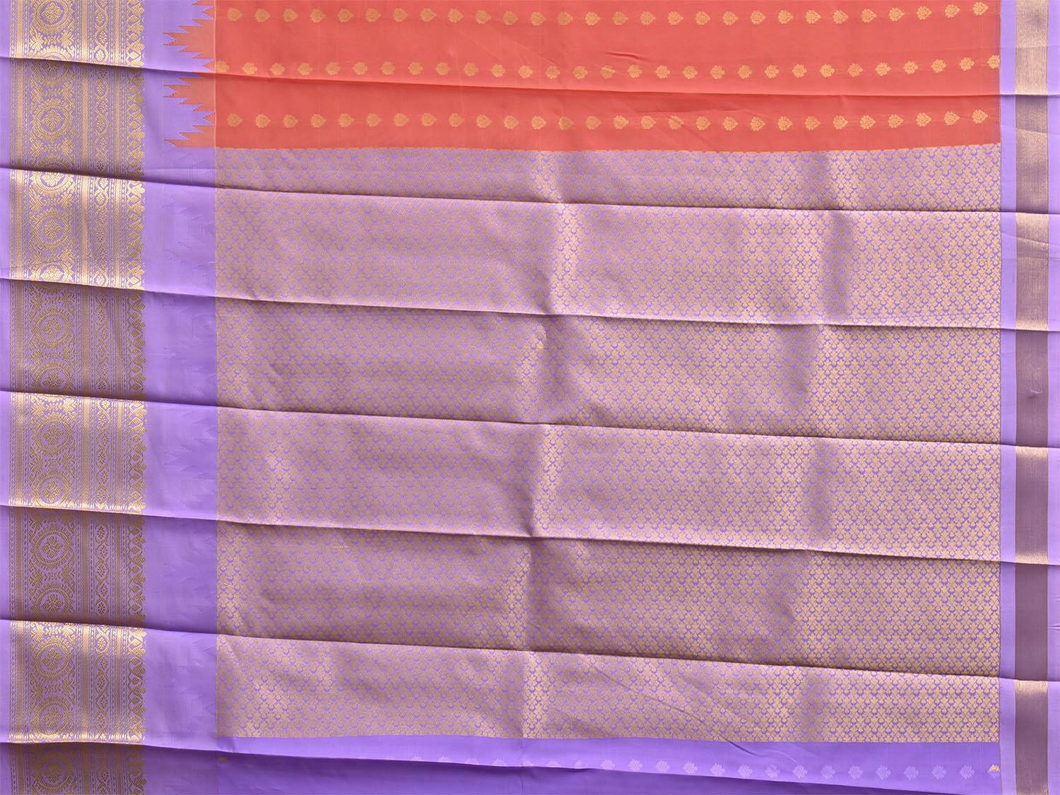 Orange and Lavender Gadwal Cotton Viscose Saree with Temple Border and Pallu Design g0609