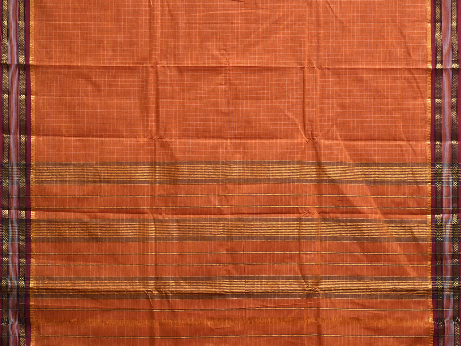 Orange and Maroon Narayanpet Cotton Handloom Saree with Checks Design No Blouse np1302