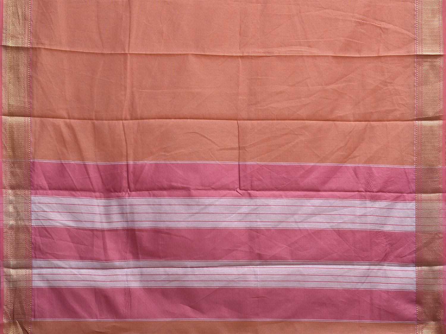 Orange and Pink Bamboo Cotton Saree with Strips Design No Blouse. This is a blend of bamboo and cotton fibers, they have characteristics of both bamboo and cotton combined into one fabric. We Advise Gentle Handwash for Fabric Care. This Saree has no Blouse.