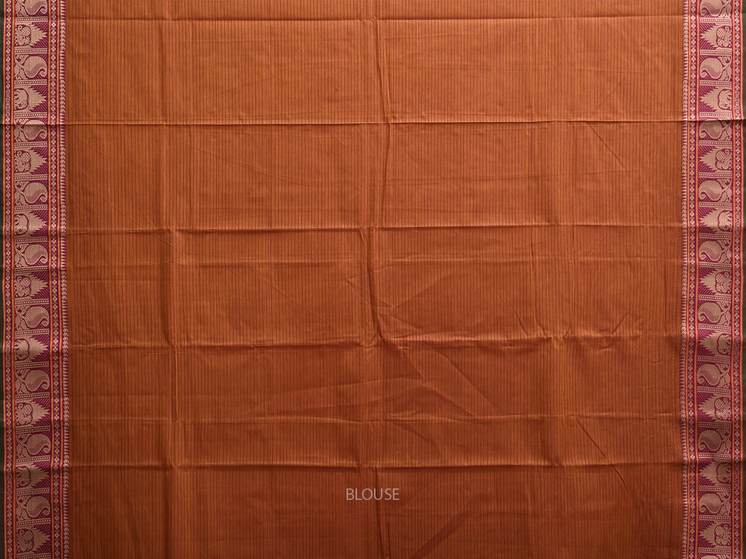 Orange and Pink Kanchipuram Cotton Saree with Strips and Border Design k0881