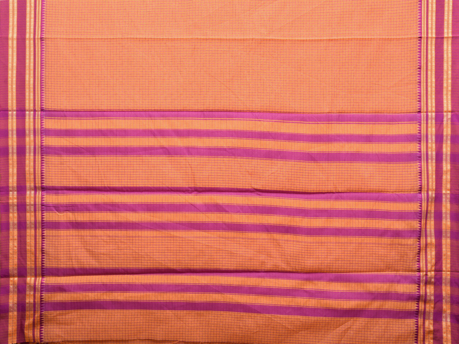 Orange and Purple Bamboo Cotton Saree with Checks Design No Blouse bc0428
