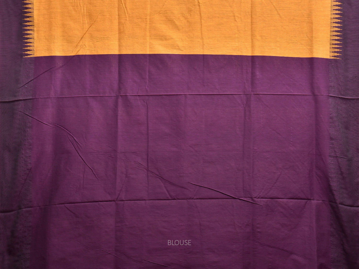 Orange and Purple Gadwal Cotton Viscose Saree with Temple Border Design. Gadwal Sarees are known for their traditional design of border and pallu made of silk and body being either cotton or silk. They are known as Sico sarees for border and pallu being silk and body being cotton. We advice dry clean for fabric care.