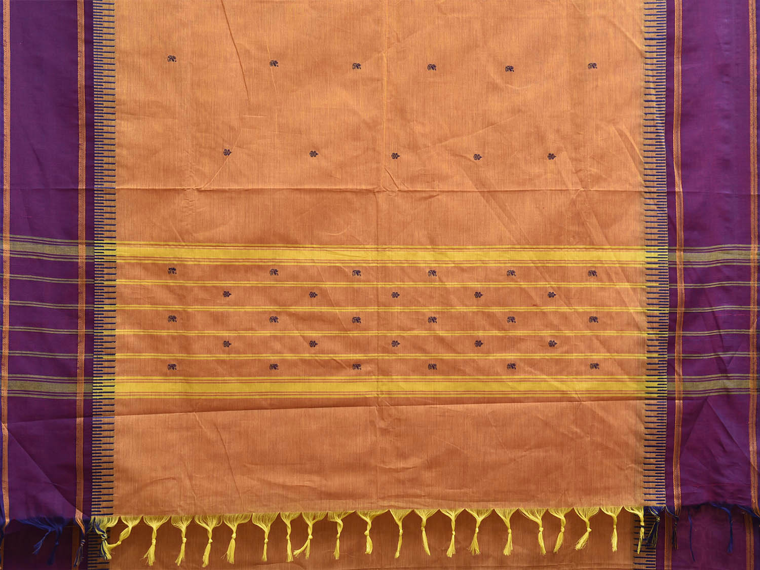 Orange and Purple Kanchipuram Cotton Saree with Strips Pallu Border Design k0988