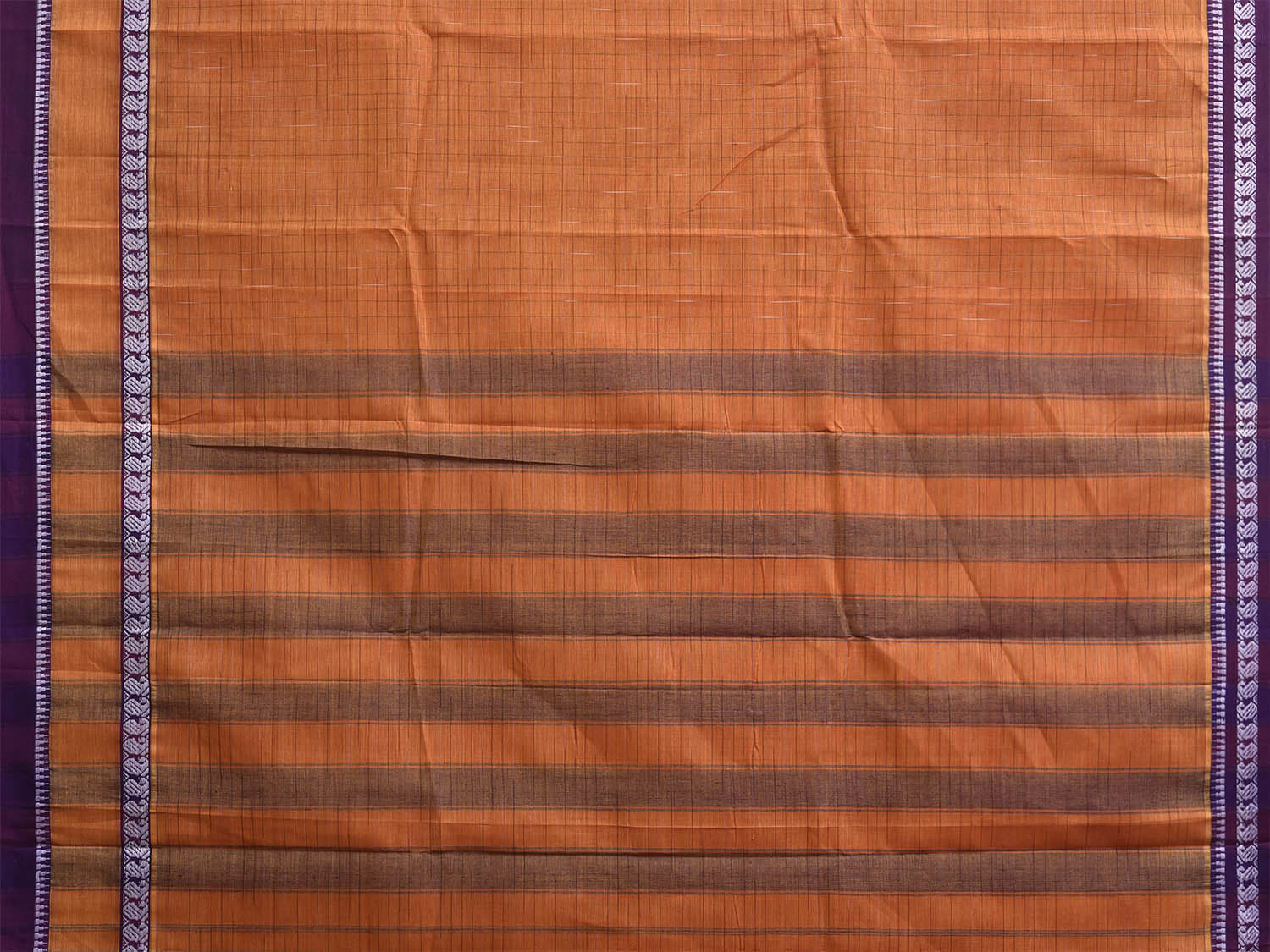 Orange and Purple Narayanpet Cotton Handloom Saree with One Side Big Border Design No Blouse. This saree has no blouse.