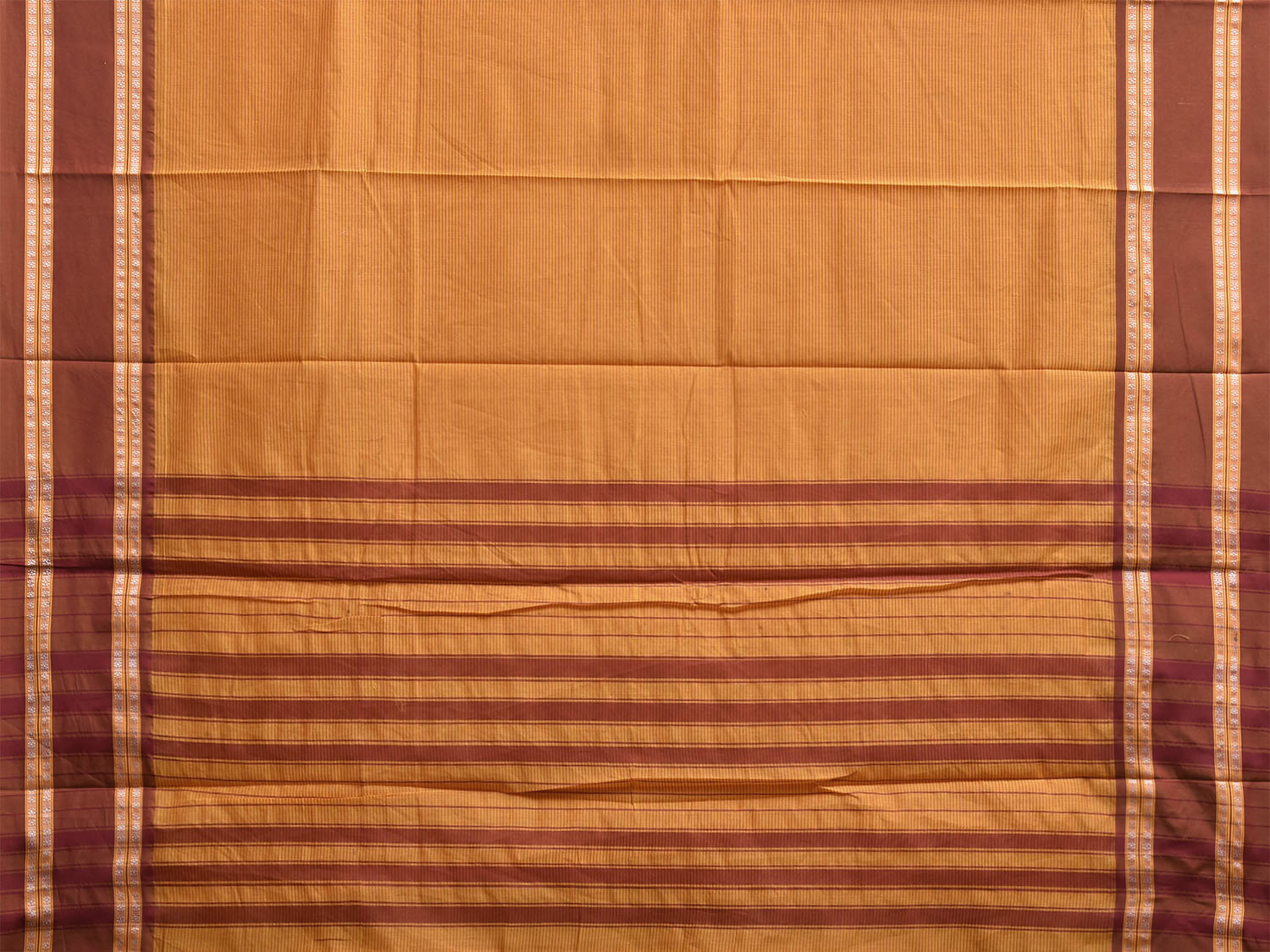 Orange and Rust Bamboo Cotton Saree with Strips Design No Blouse bc1014