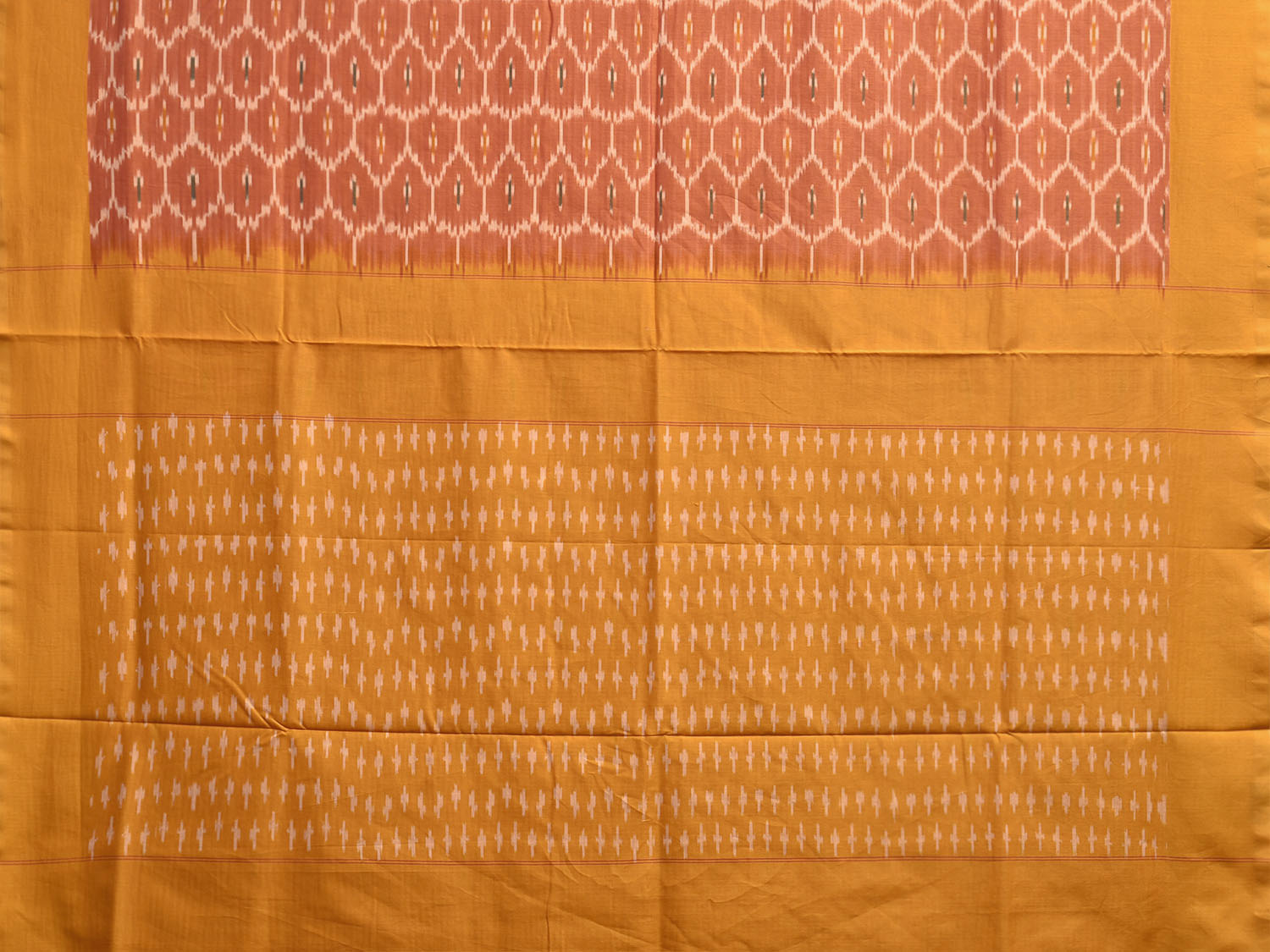 Orange and Yellow Ikat Cotton Handloom Saree with All Over Grill Design No Blouse i0938