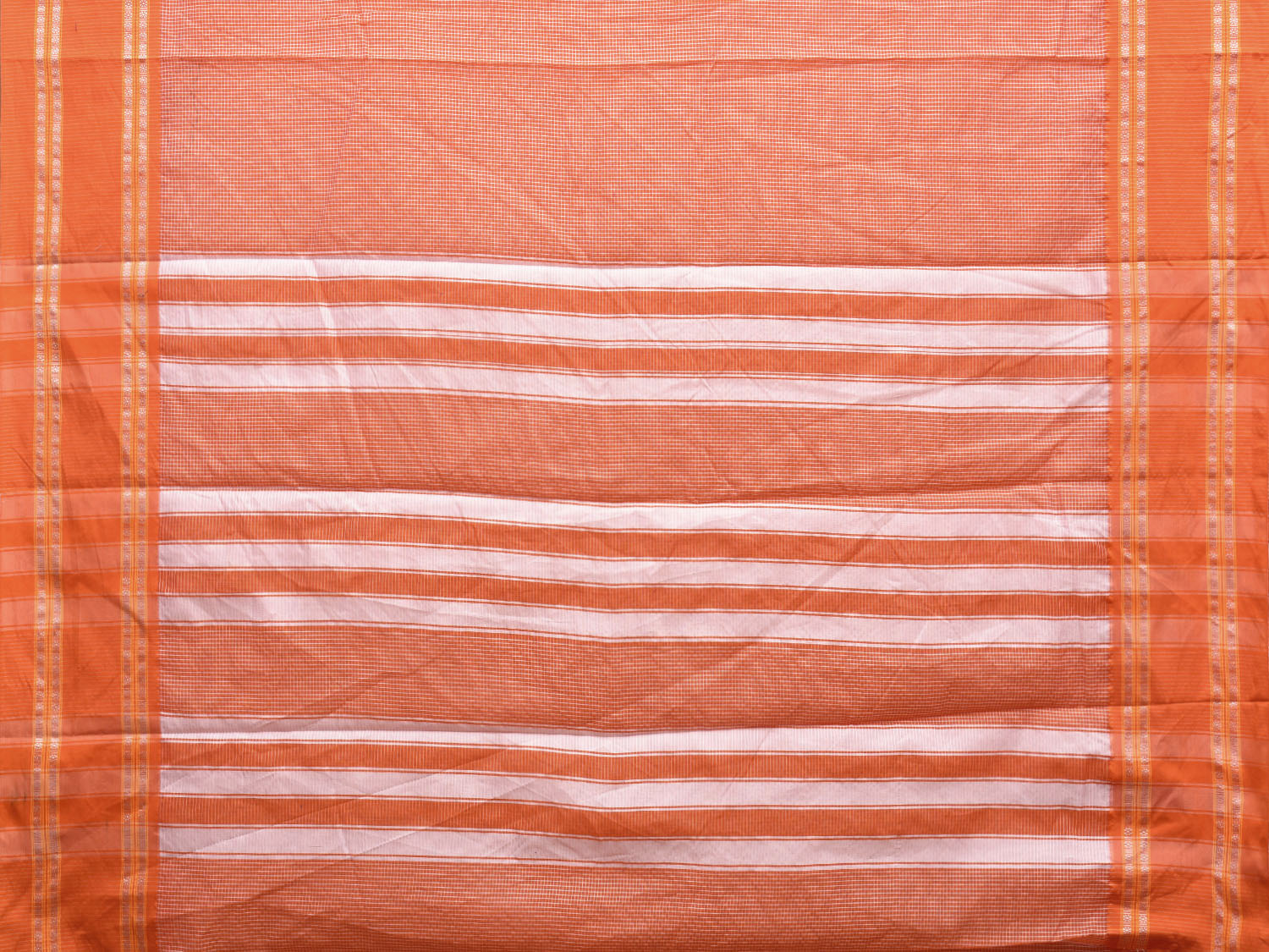 Orange Bamboo Cotton Saree with Small Checks Design No Blouse bc0422
