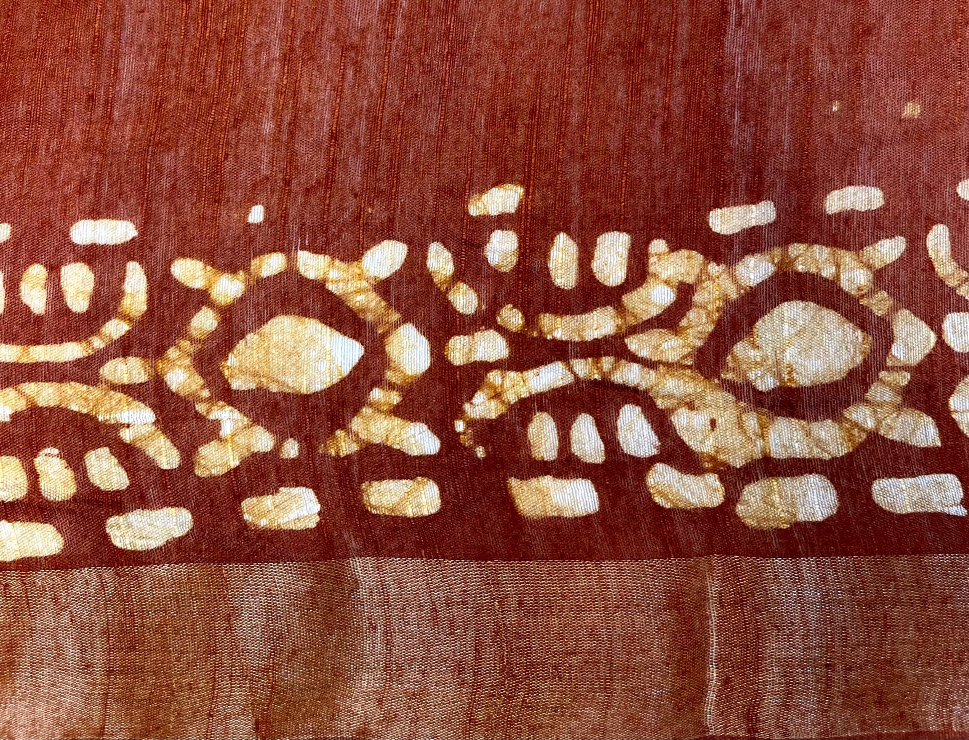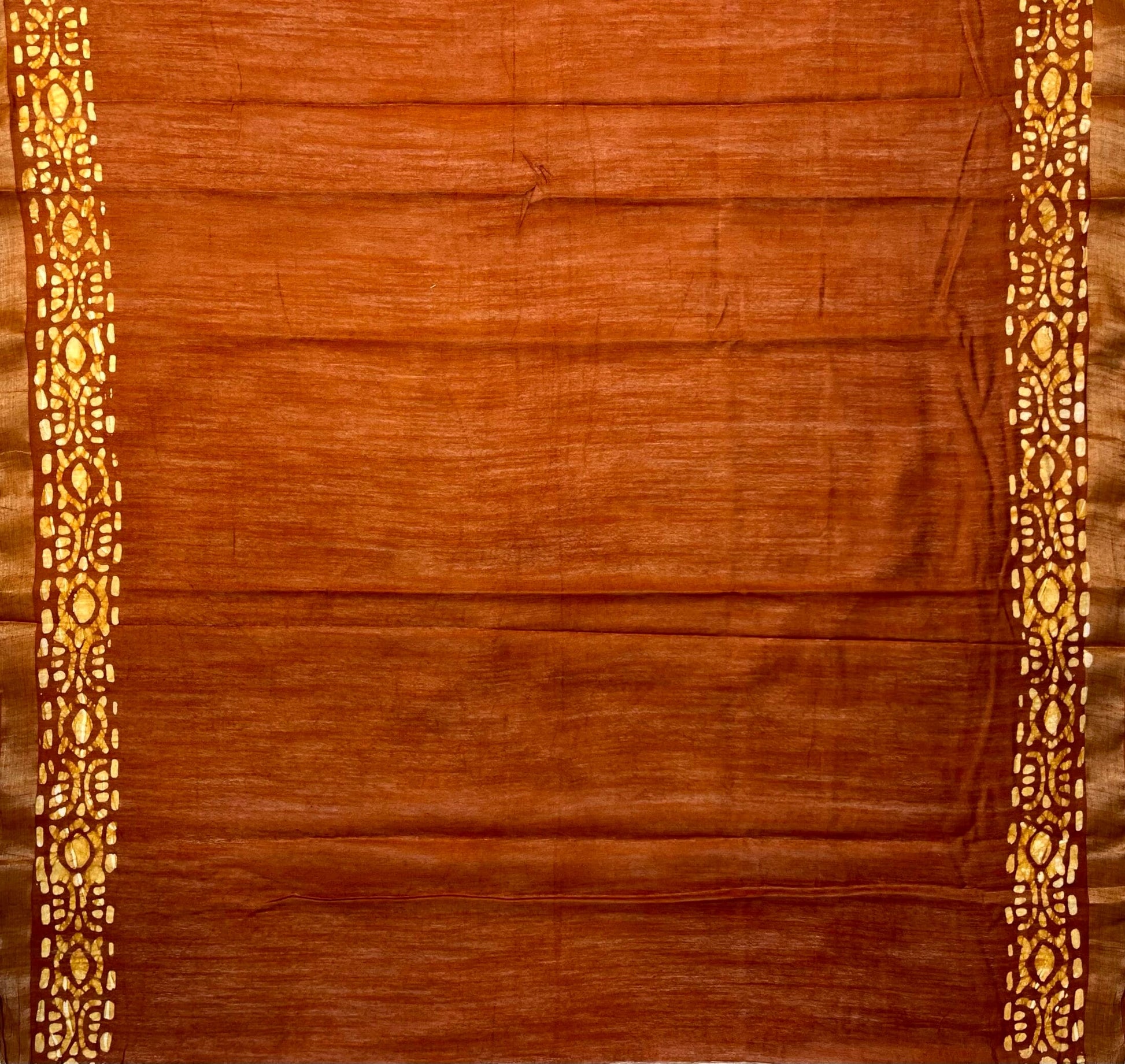 Orange Batik Printed Zari Border with Body and Pallu Design