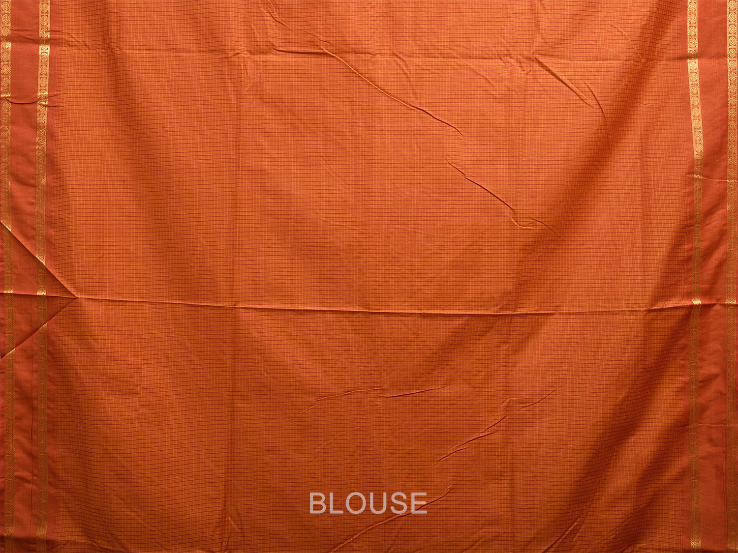 Orange Gadwal Cotton Saree with Checks and Rudraksh Border Design g0415