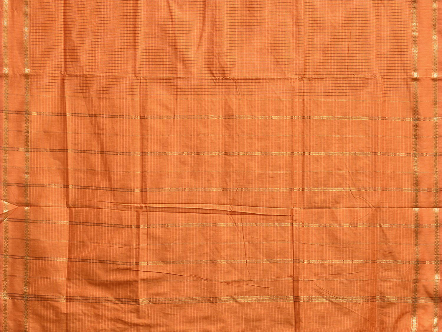 Orange Gadwal Cotton Viscose Saree with Checks and Border Design g0558