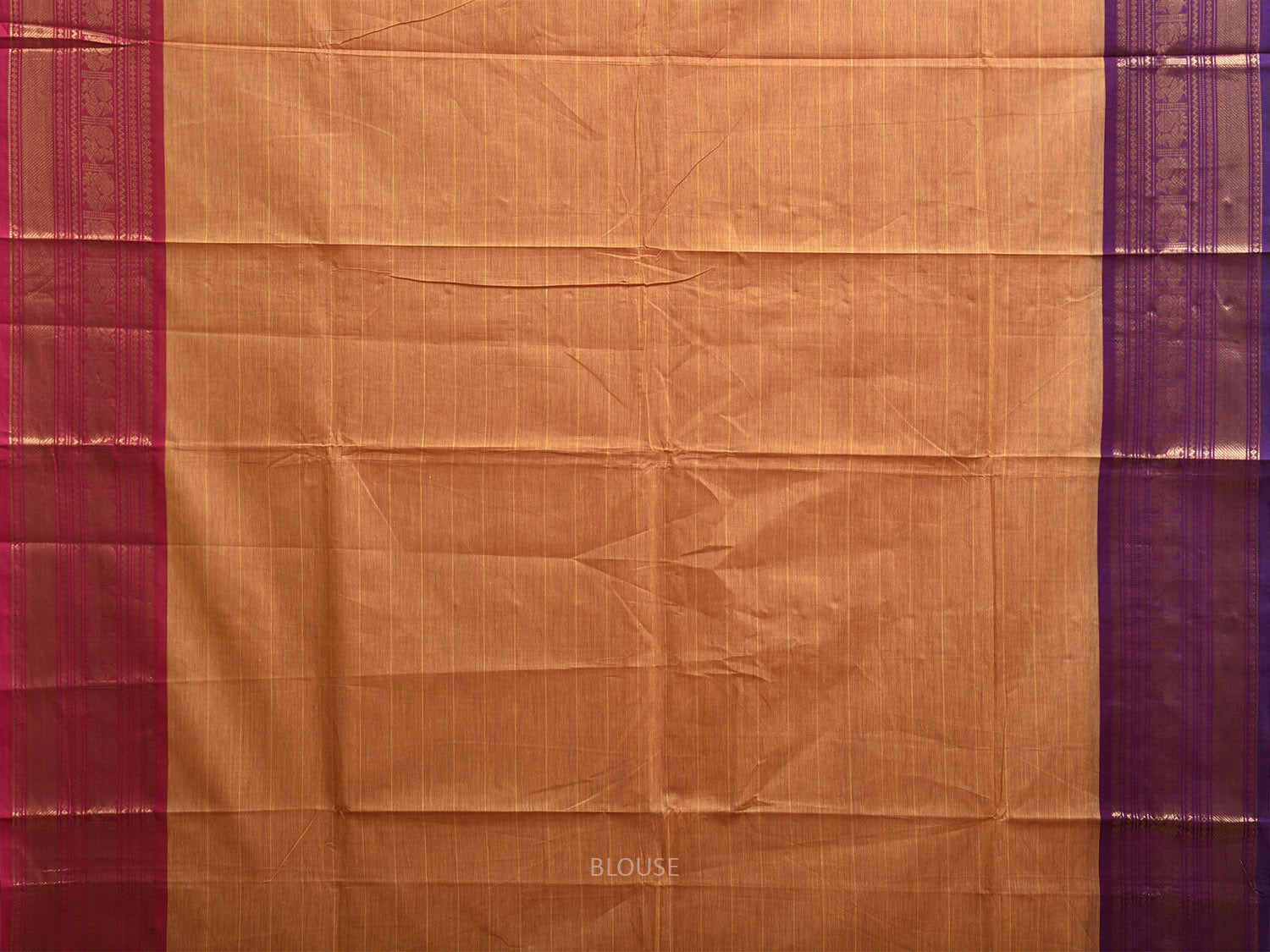 Orange Kanchipuram Cotton Saree with Strips and Ganga-Jamuna Border Design. Traditional Simple South Indian Attire Saree for any Casual Occasions. As it’s a cotton saree we advice gentle handwash separately for fabric care.
