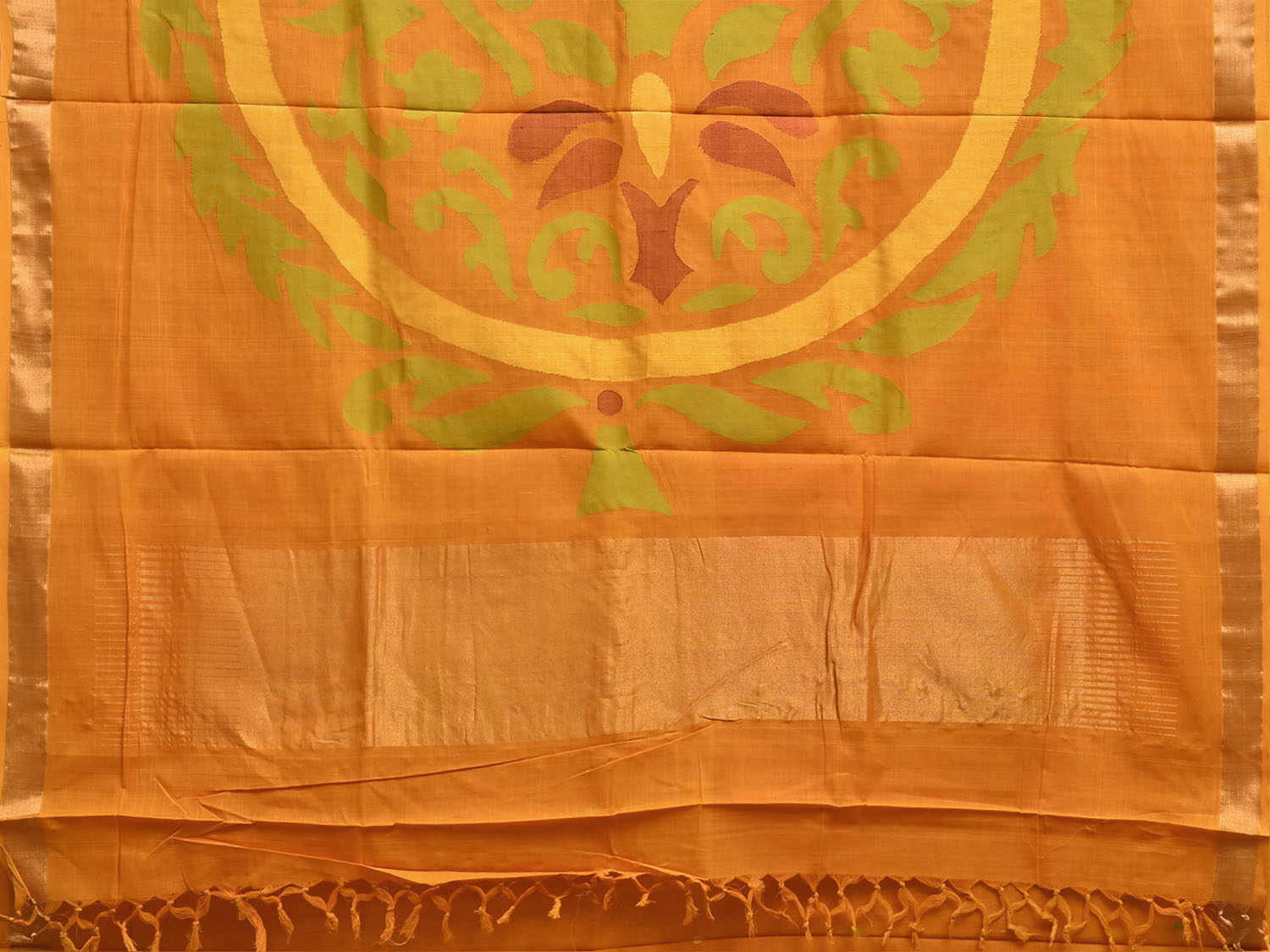 Orange Khadi Cotton Handloom Saree with Big Mango Pallu Design. Khadi saree is primarily woven from cotton and may also include silk, or wool. It is a versatile fabric, cool in summer and warm in winter. For fabric care we advise dry clean.