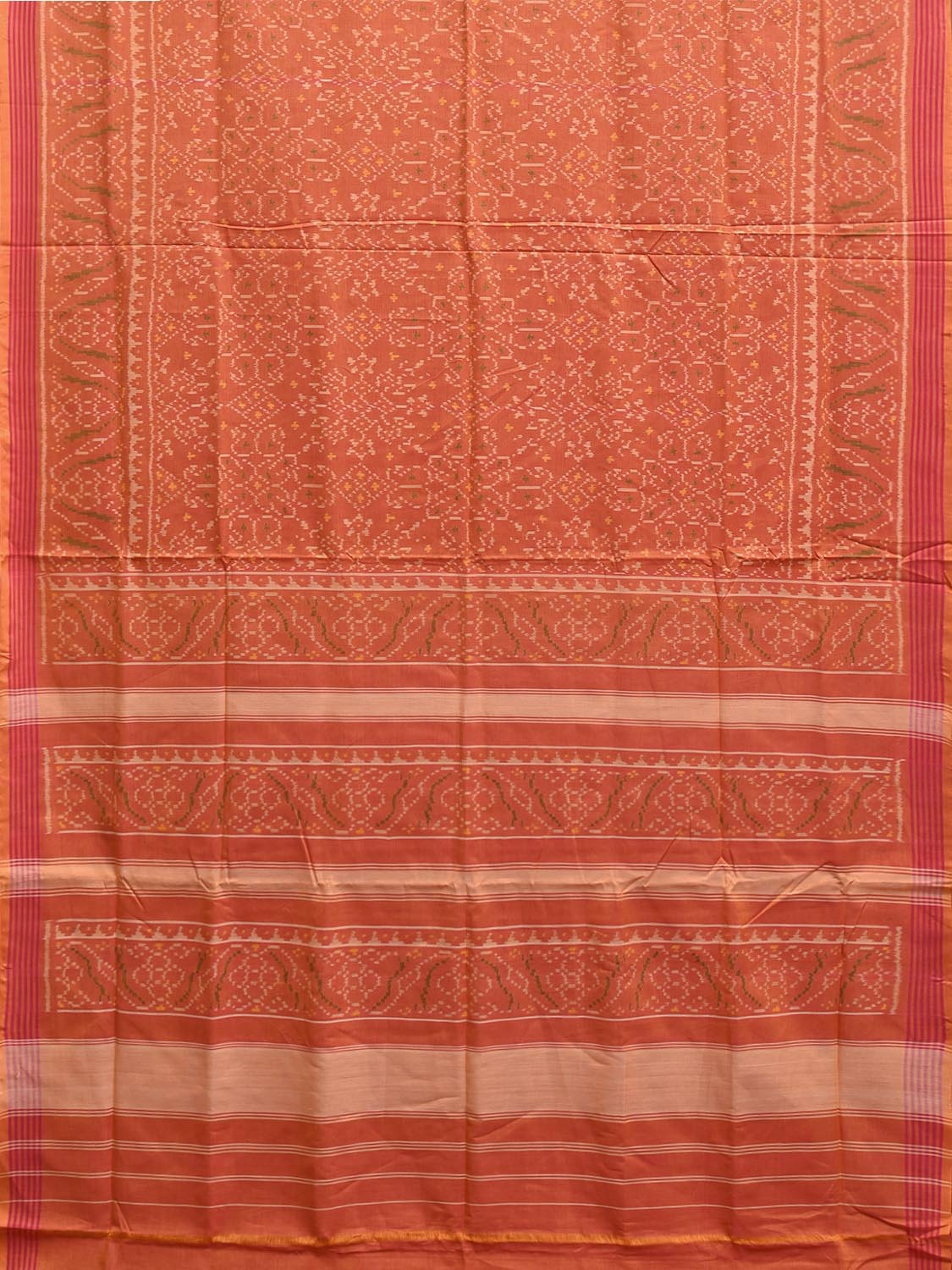 Orange Pochampally Ikat Cotton Handloom Saree with All Over and Border Design i0880