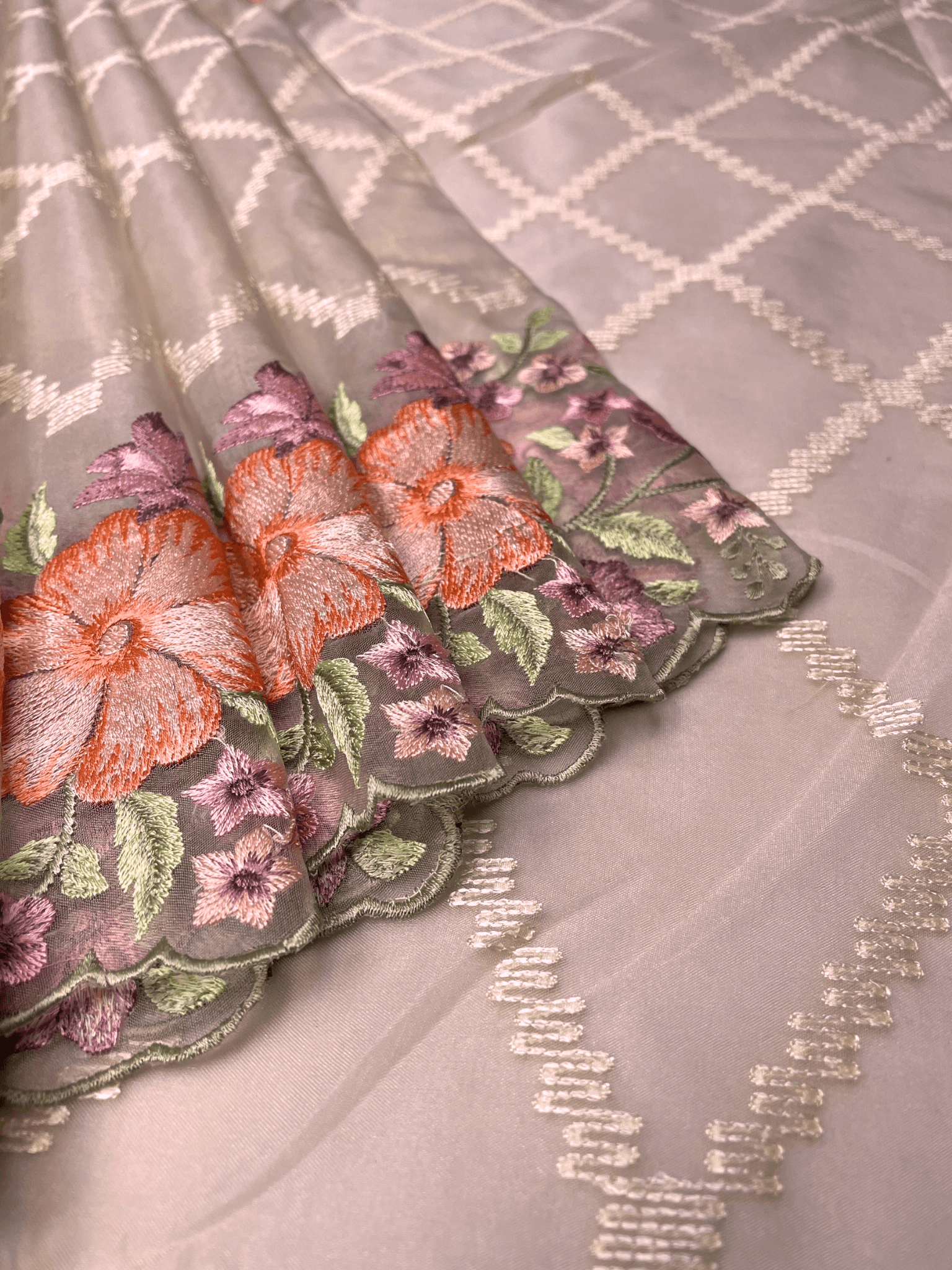 Organza Saree Embroidery with Butta and Border Design b0336ds