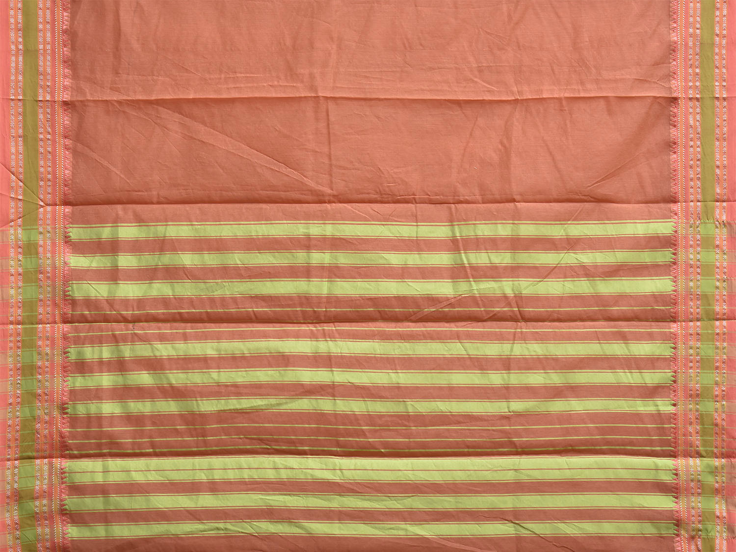 Peach and Green Bamboo Cotton Plain Saree with Strips Pallu Design No Blouse bc1032