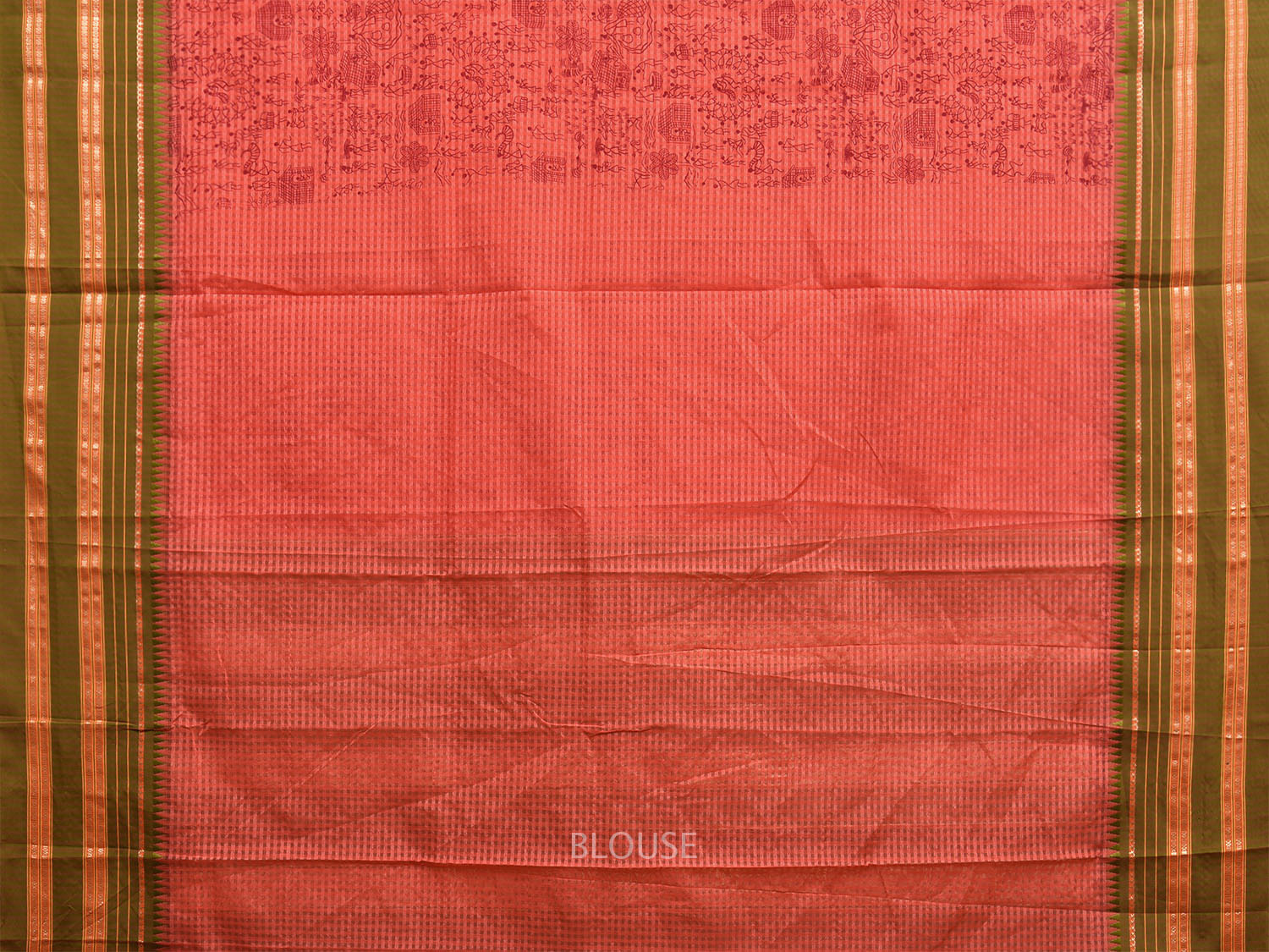 Peach and Green Bamboo Cotton Viscose Silk Saree with Digital Print Design bc0699