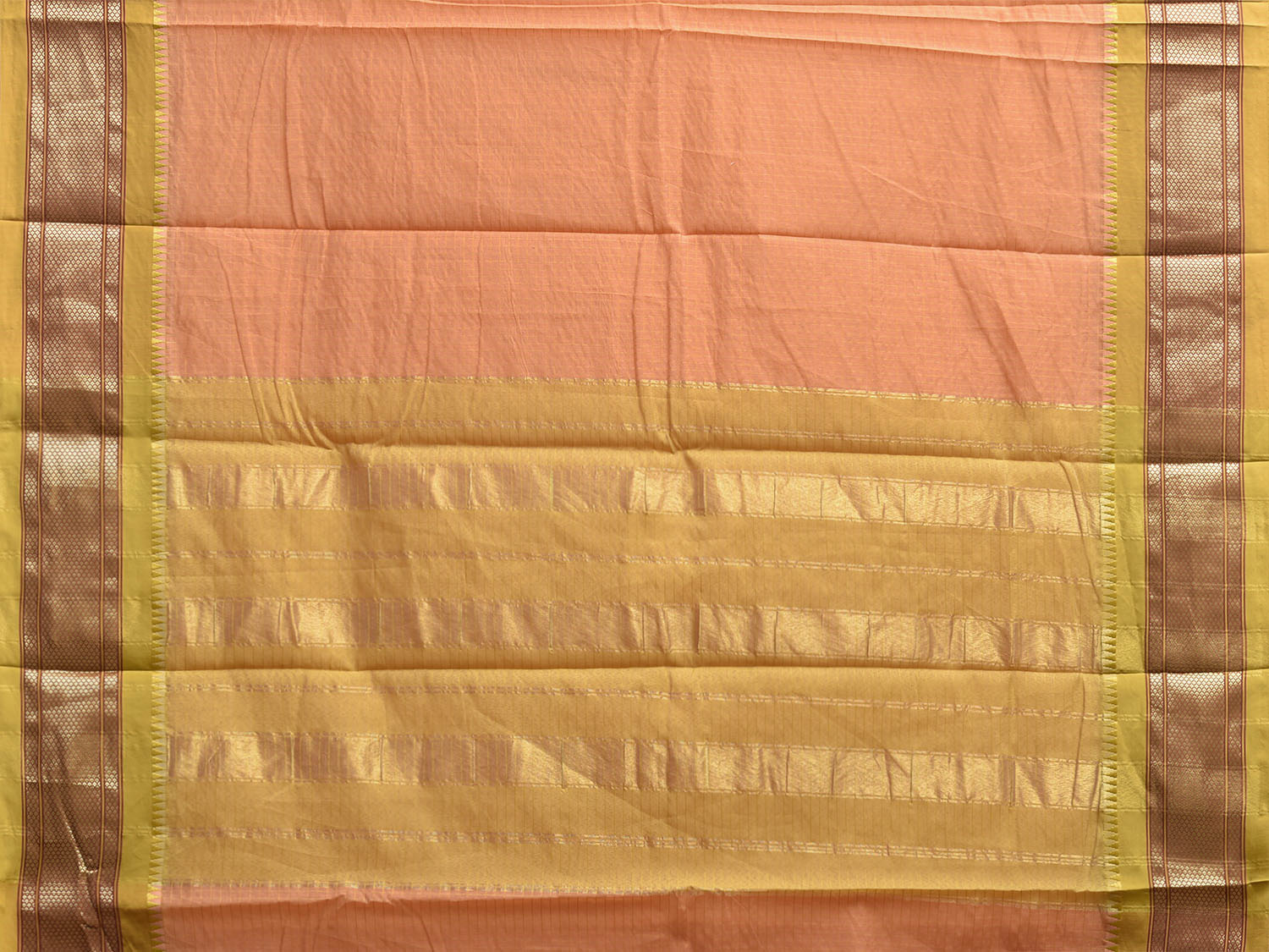 Peach and Lemon Green Bamboo Cotton Saree with Checks and Contrast Pallu Design No Blouse bc0940