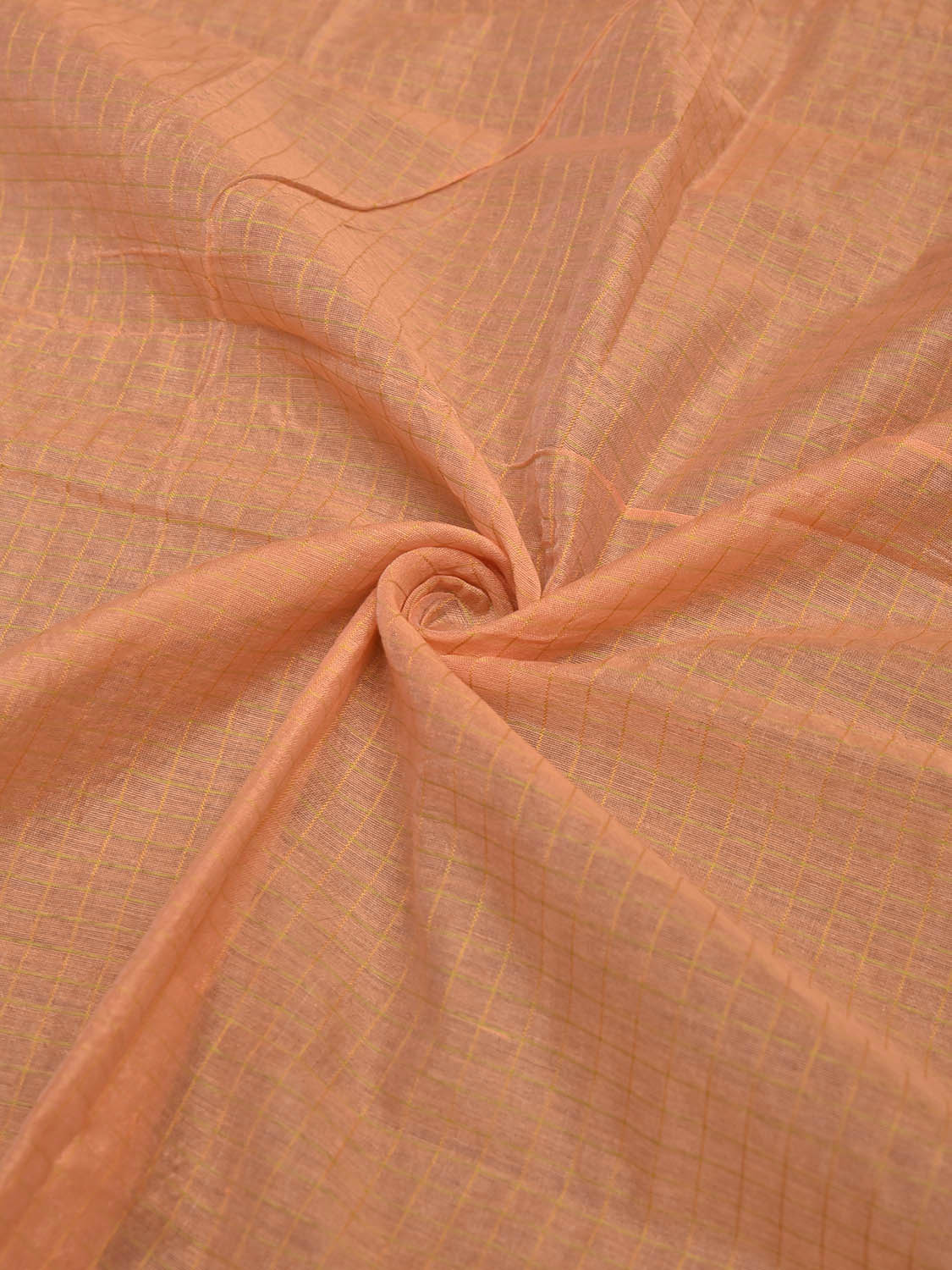 Peach and Olive Bamboo Cotton Blouse with Checks Design Length 68cm Width 44 Inches. Beautiful Pattern Blouse Fabric and Easy to Match to Any Suitable Saree. We Advise Gentle Handwash for Fabric Care.