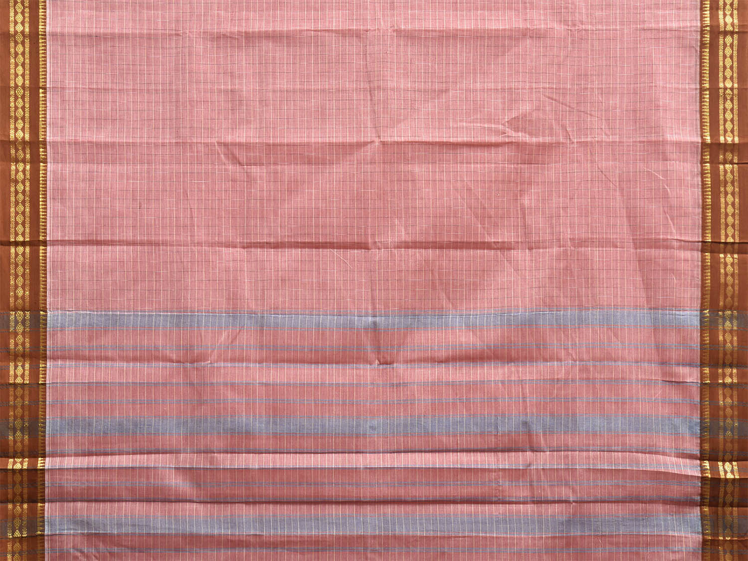 Peach and Rust Narayanpet Cotton Handloom Saree with Strips Pallu Design No Blouse np1336