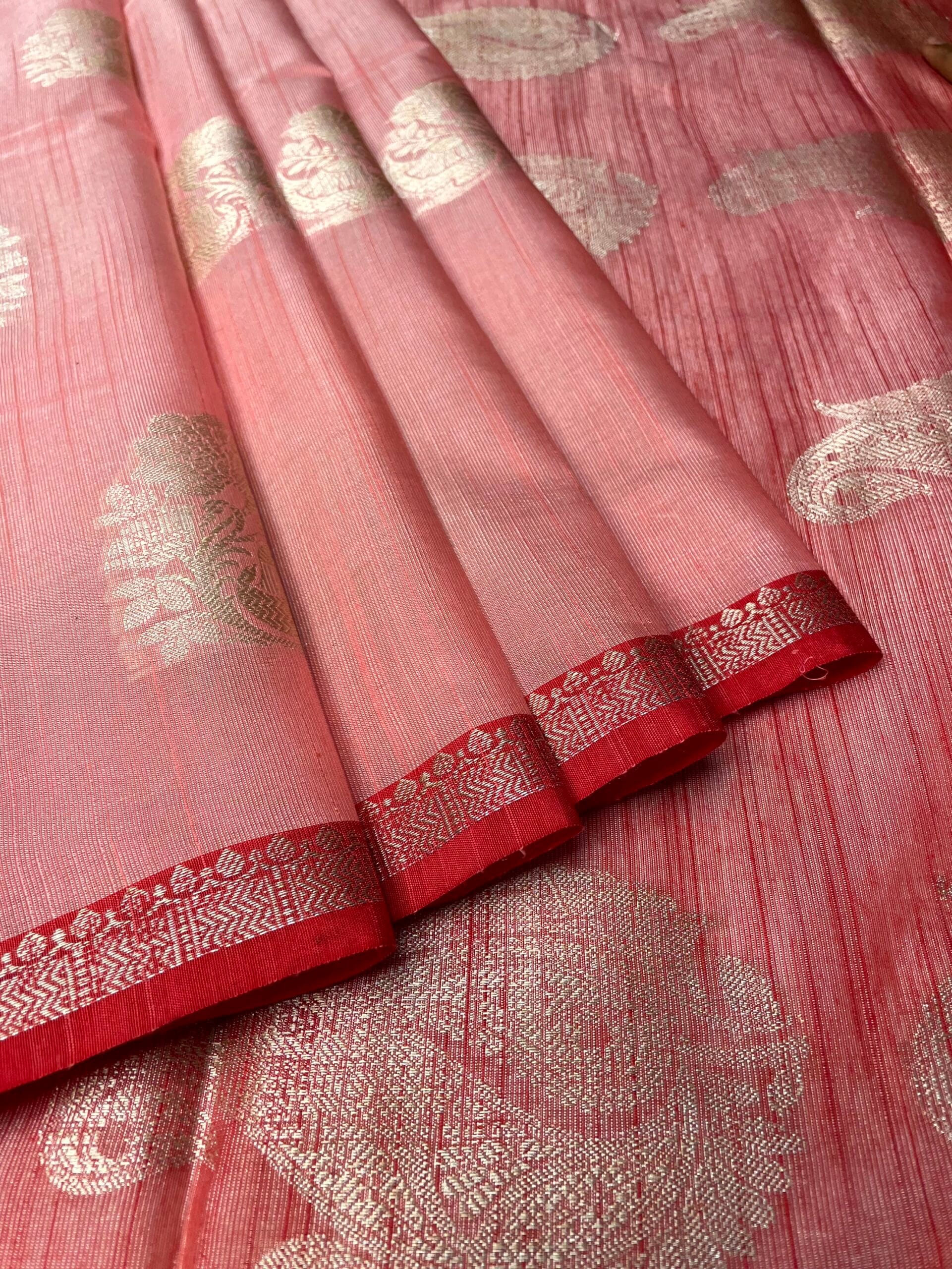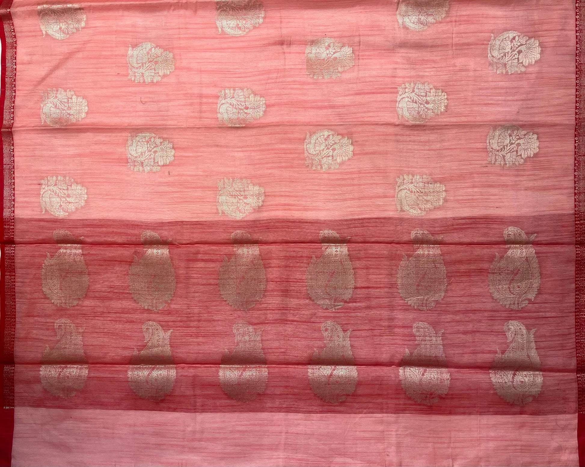 Peach Banaras Katan Saree with Border and Pallu Design b0330ds