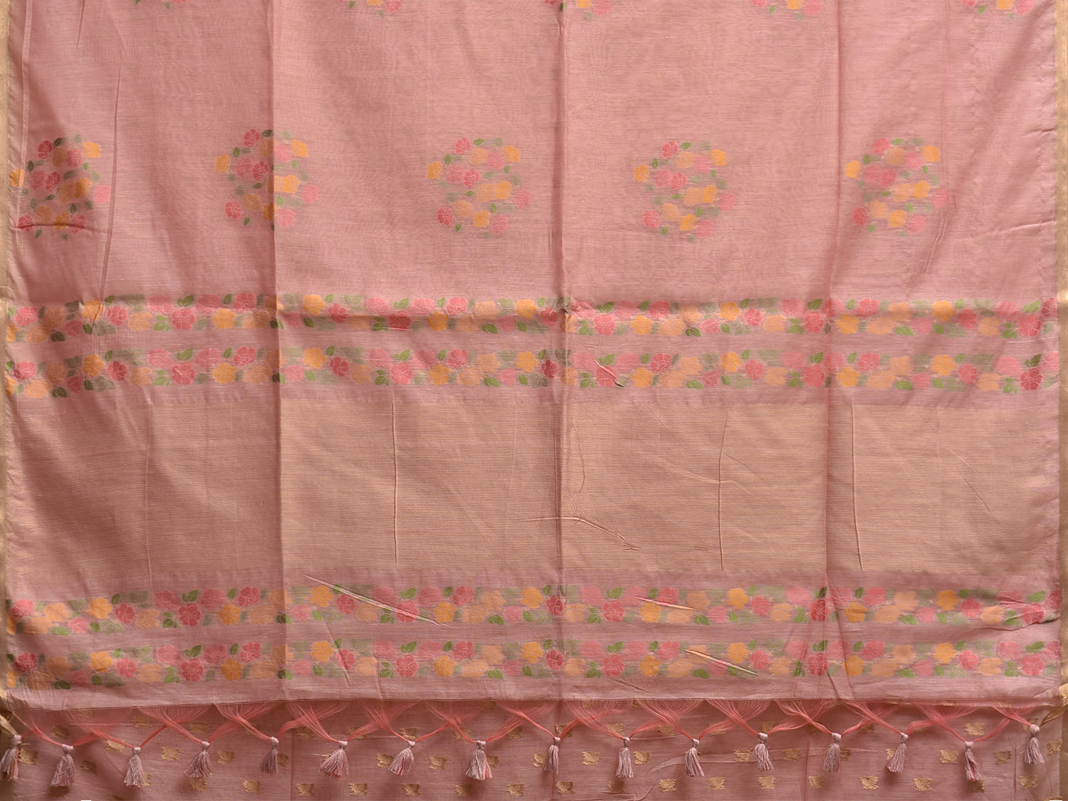 Peach Dhakai Jamdani Cotton Viscose Saree with Floral Buta Design dj0162