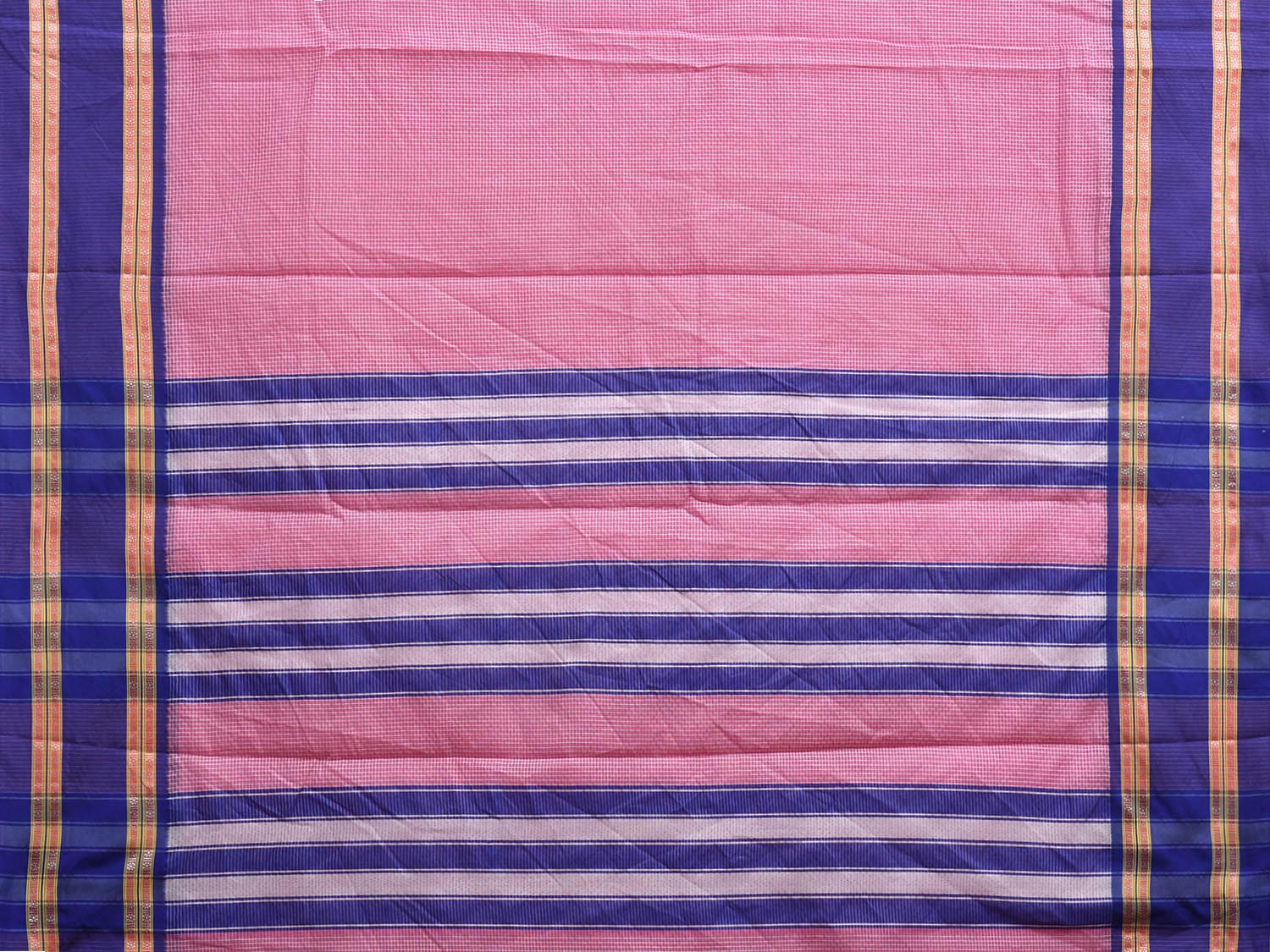 Pink and Blue Bamboo Cotton Saree with Small Checks Design No Blouse bc0727
