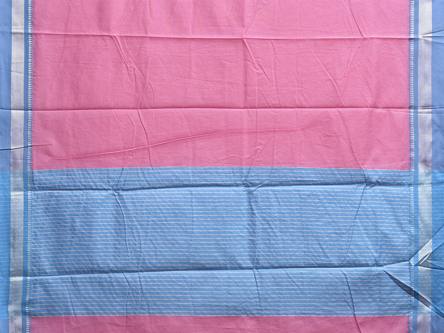 Pink and Blue Bamboo Cotton Saree with Strips Design No Blouse bc0906