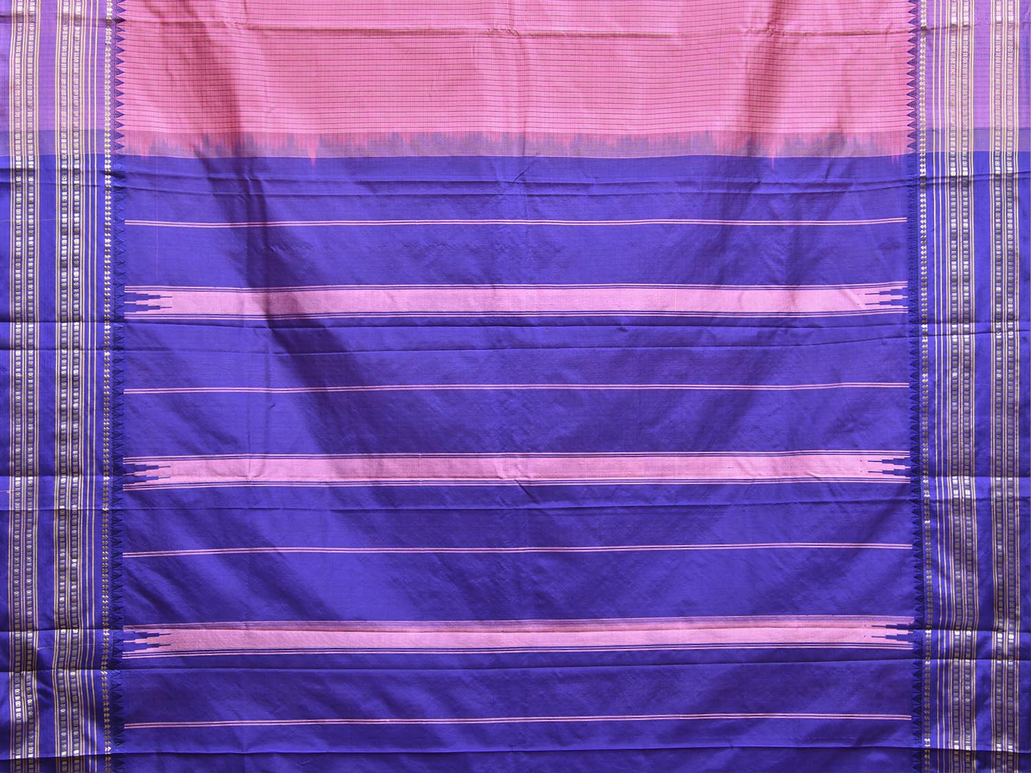 Pink and Dark Blue Narayanpet Silk Saree with Checks Design np1547