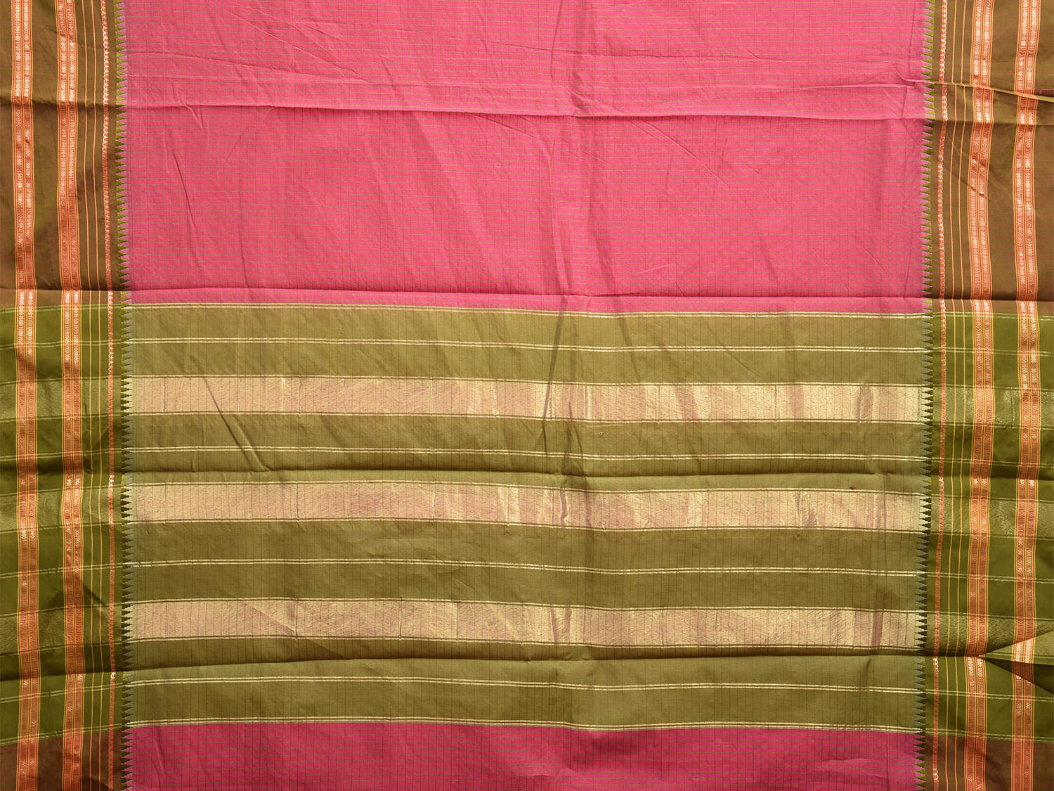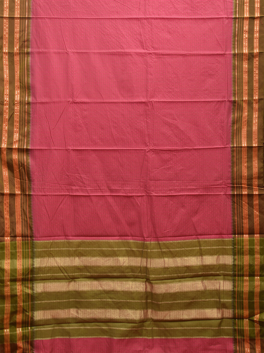 Pink and Green Bamboo Cotton Viscose Silk Saree with Checks Design No Blouse bc0487
