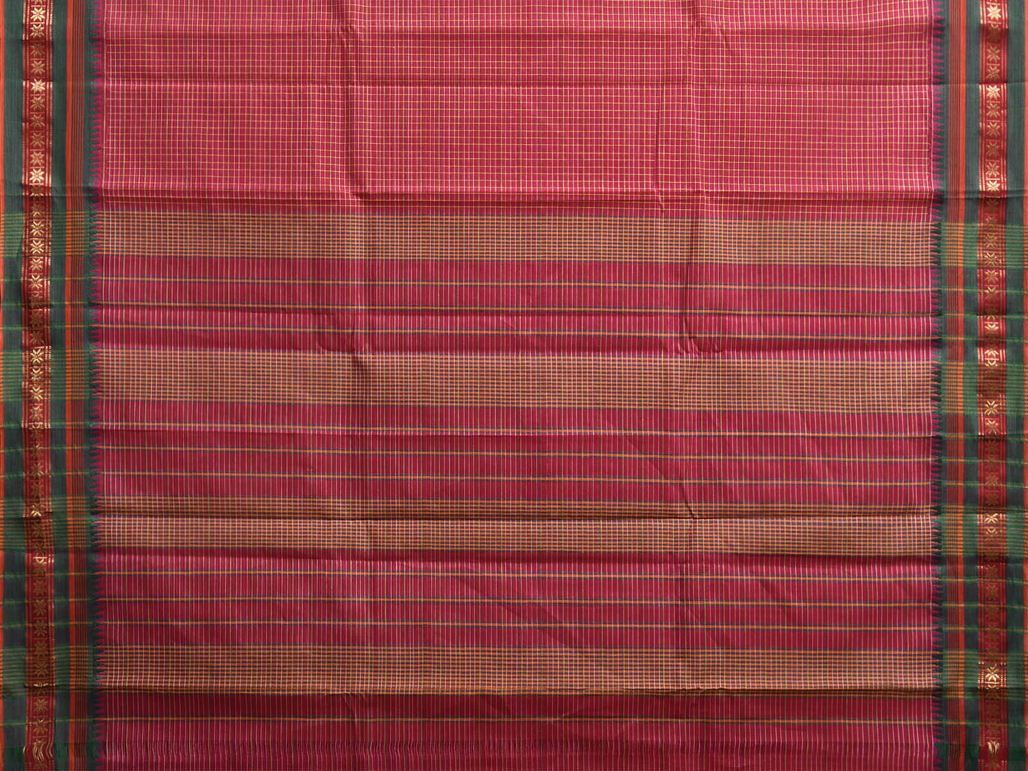 Pink and Green Narayanpet Cotton Handloom Saree with Checks Design No Blouse np1172