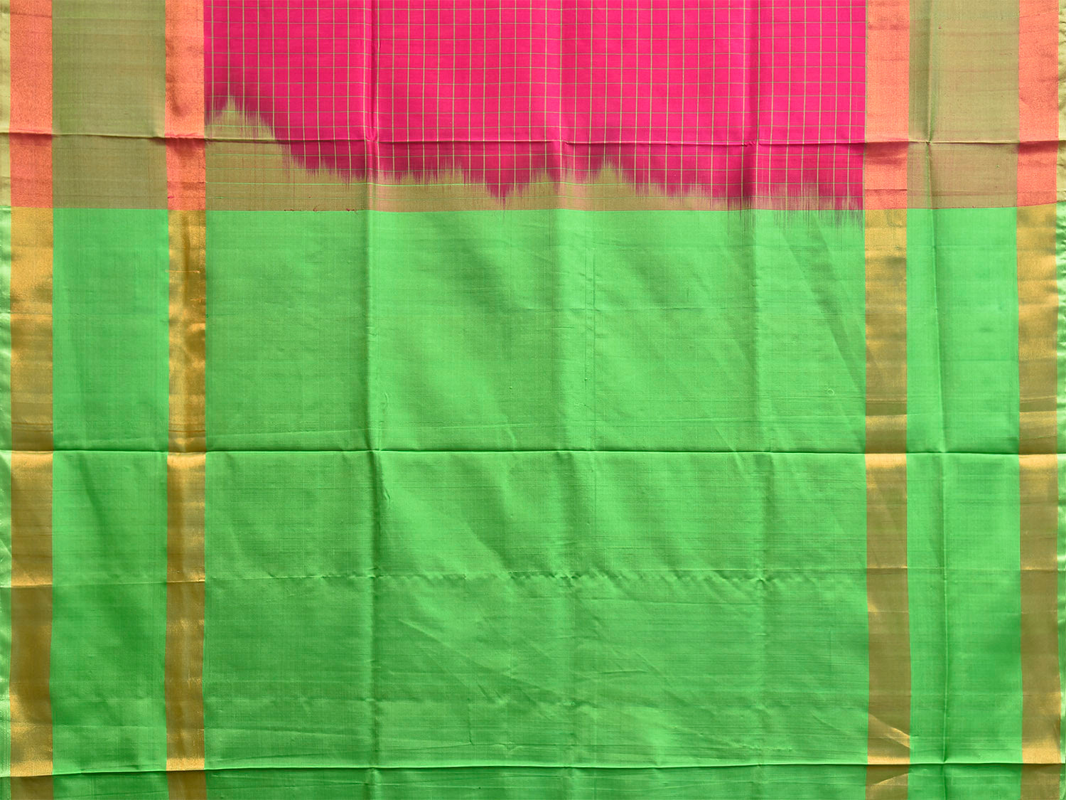 Pink and Light Green Uppada Silk Handloom Saree with Checks Design u2505