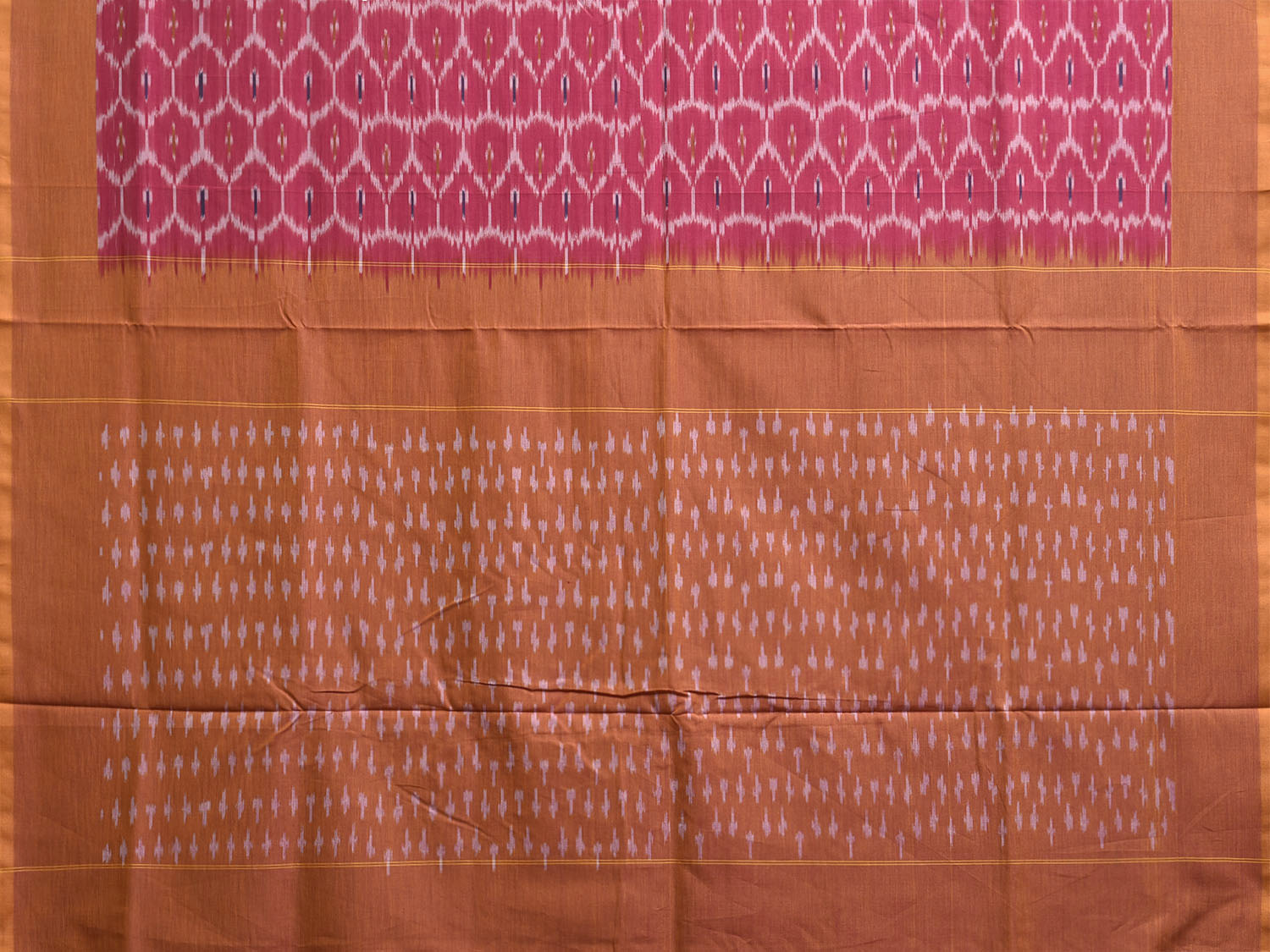 Pink and Mustard Ikat Cotton Handloom Saree with All Over Grill Design No Blouse i0932