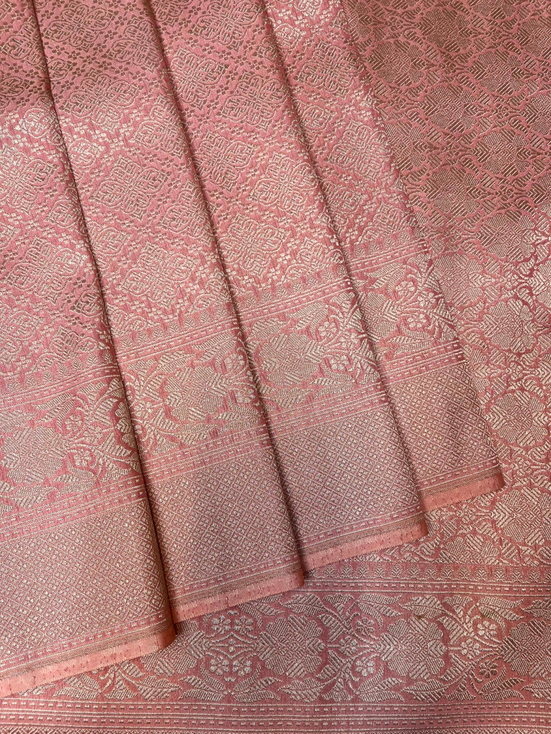 Pink Banaras Allover Brocade Saree with Border and Pallu Design