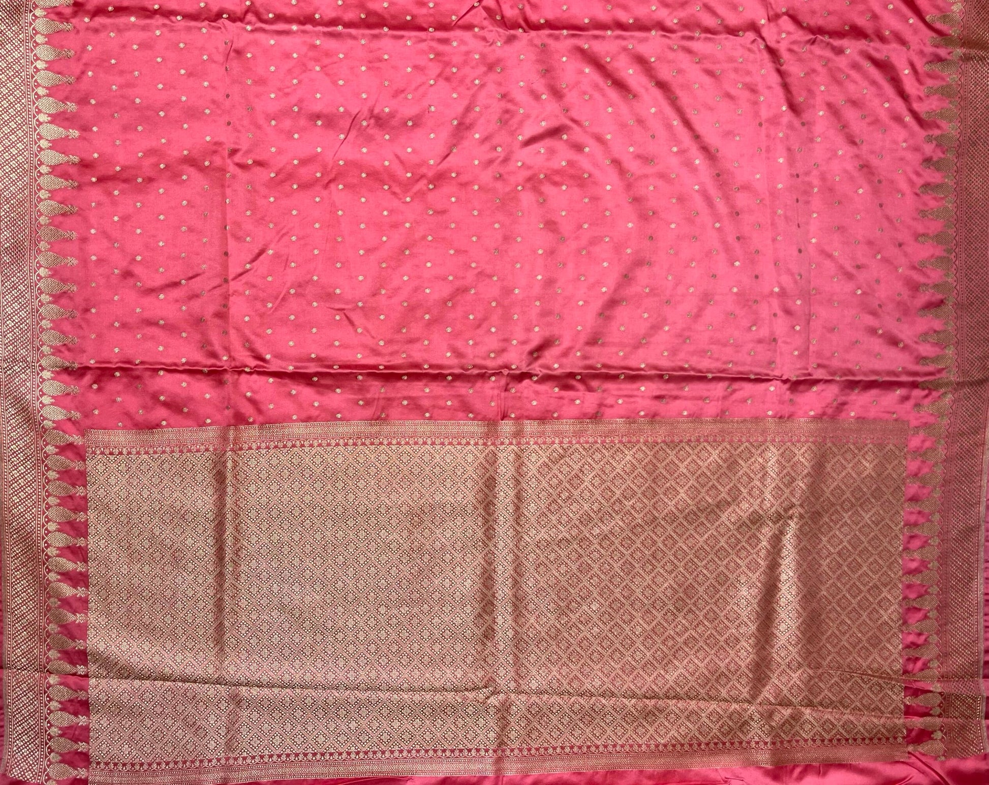 Pink Burgundy Banaras Katan Silk Saree with Body Butti and Border Design