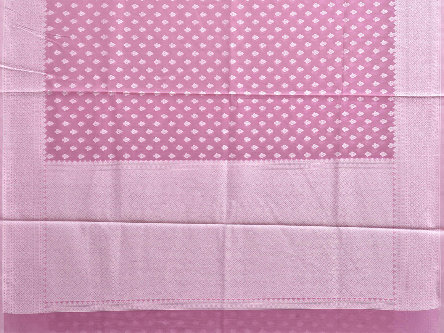 Pink Dhakai Jamdani Cotton Viscose Saree with Small Buta and Pallu Design. These are some of the traditional Dhakai Jamdani designs, these sarees have geometric designs and sometimes floral or combination of both. We advice gentle handwash separately for fabric care.