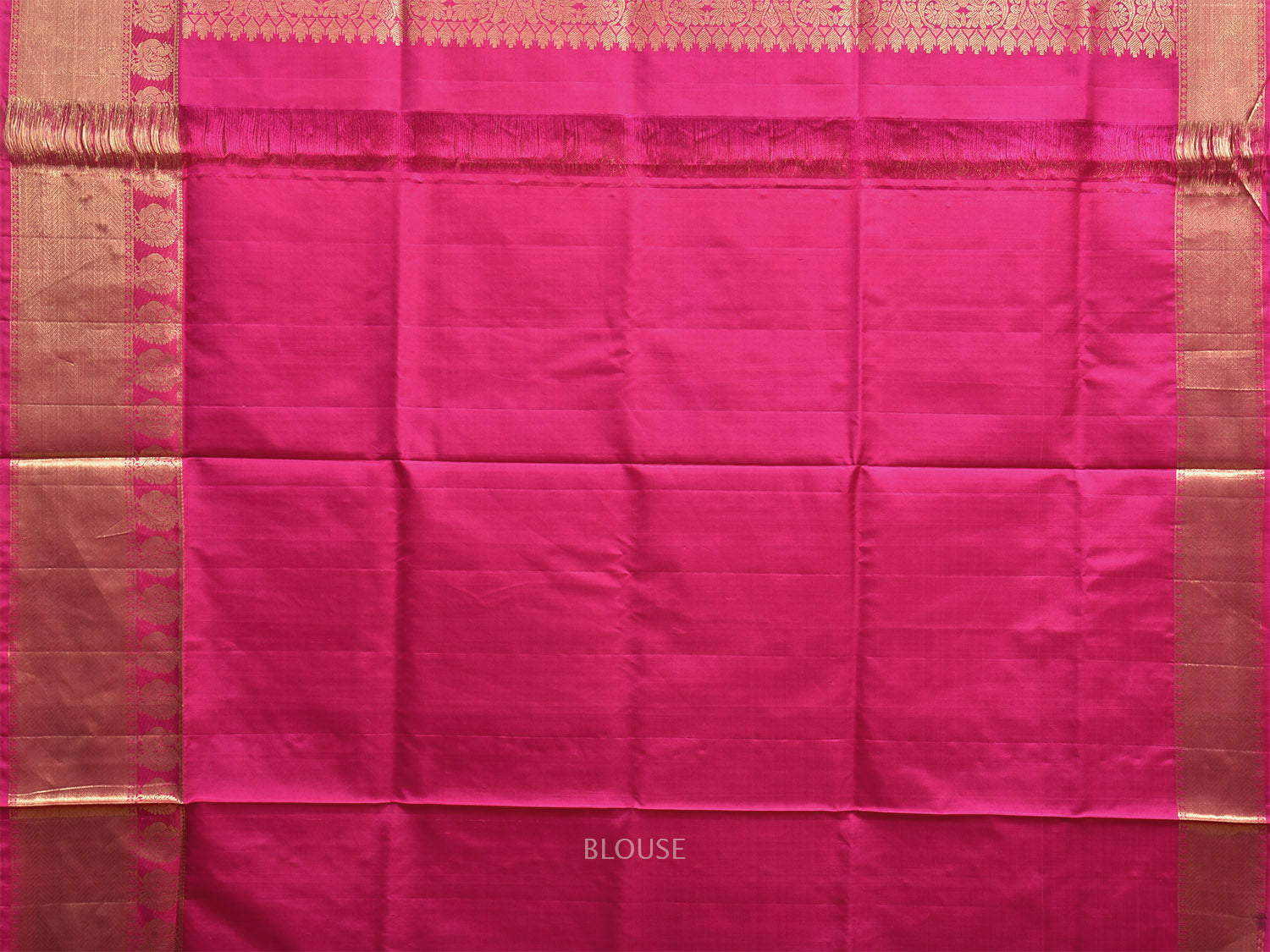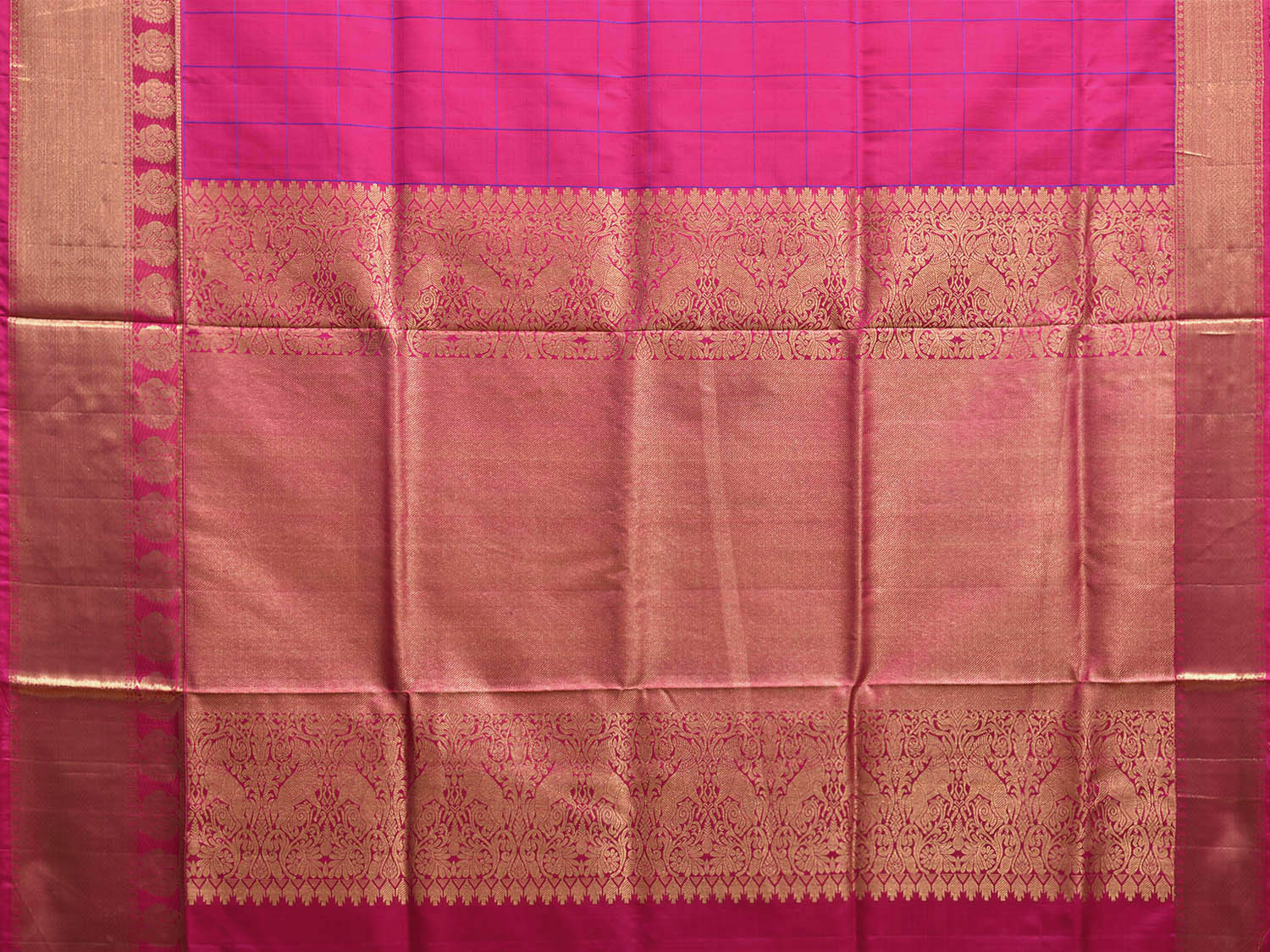 Pink Kanchipuram Silk Handloom Saree with Checks and Border-Pallu Design k0801