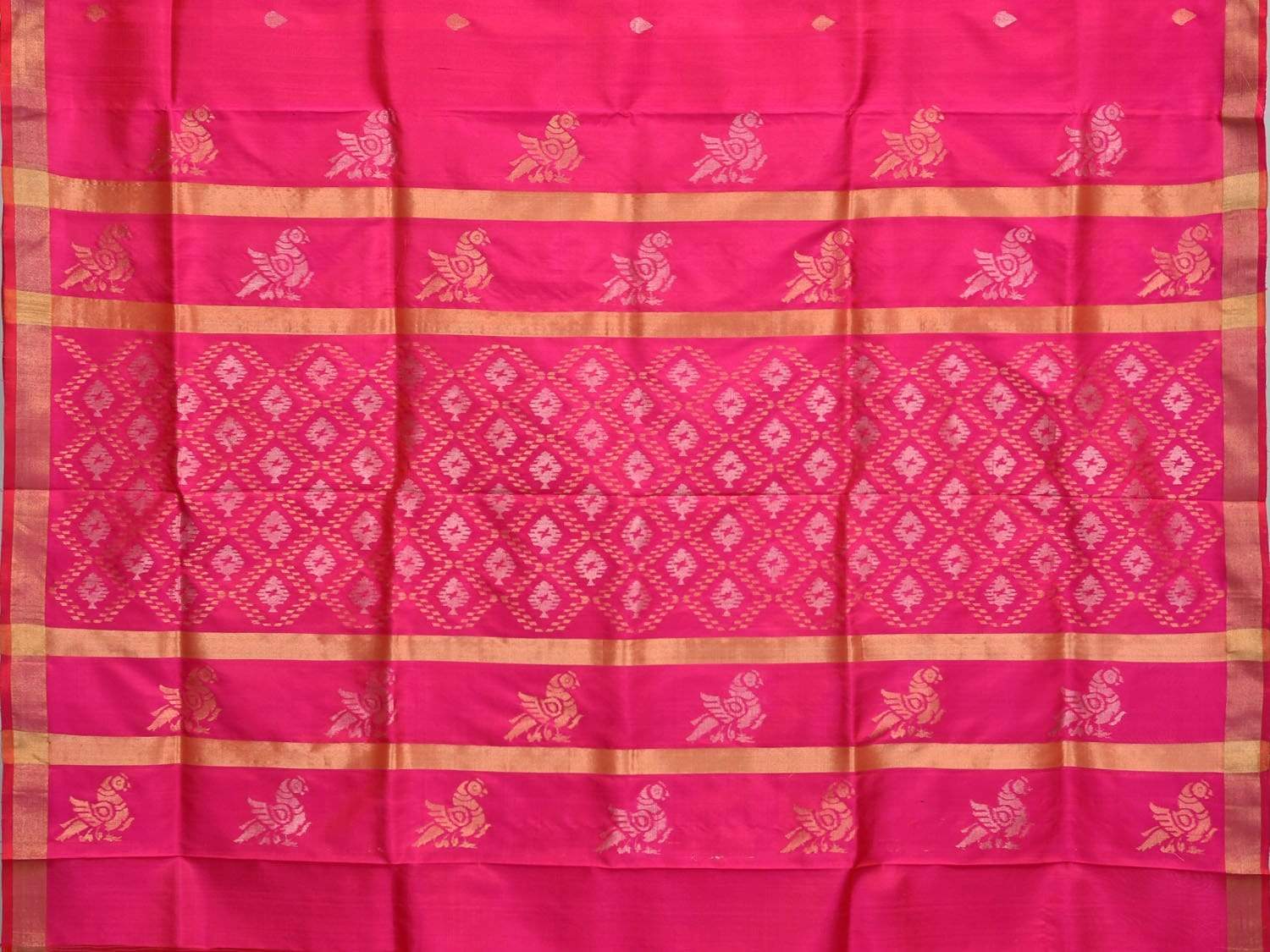 Pink Uppada Silk Handloom Saree with Birds and Jamdani Pallu Design u1555