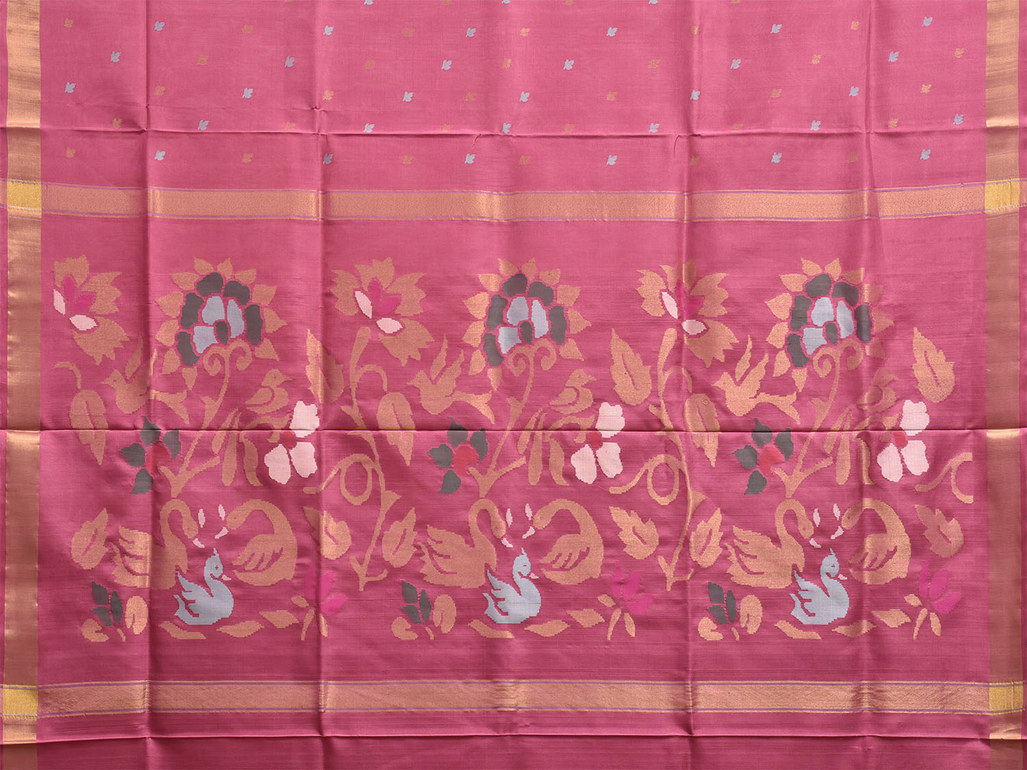 Pink Uppada Silk Handloom Saree with Floral and Swan Pallu Design u2471